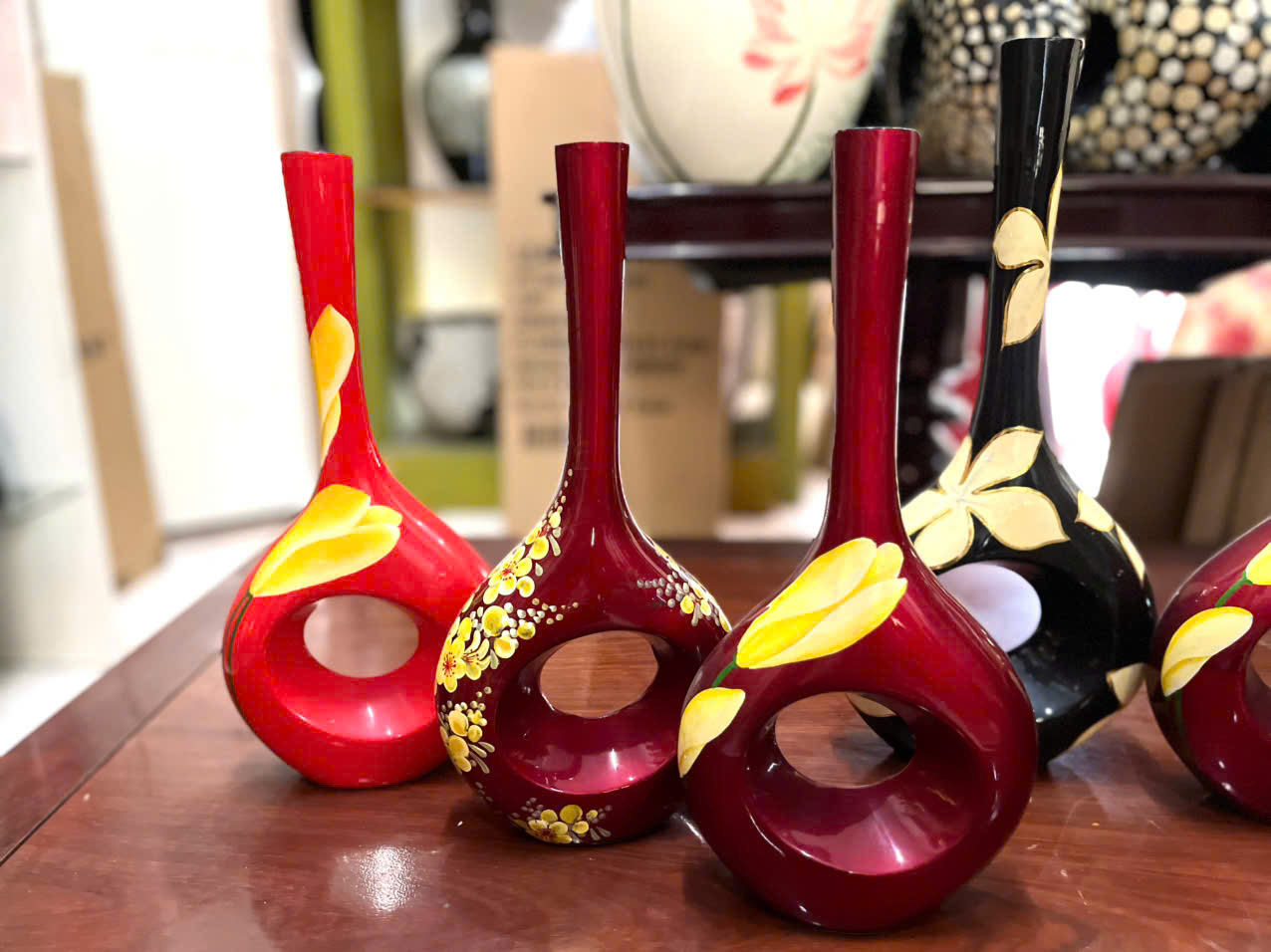 Lọ hoa sơn mài tuân thủ chặt chẽ quy trình và kỹ thuật từ khâu làm vóc cho đến khâu thể hiện, tạo nên những họa phẩm sơn mài đậm bản sắc Việt mà không
