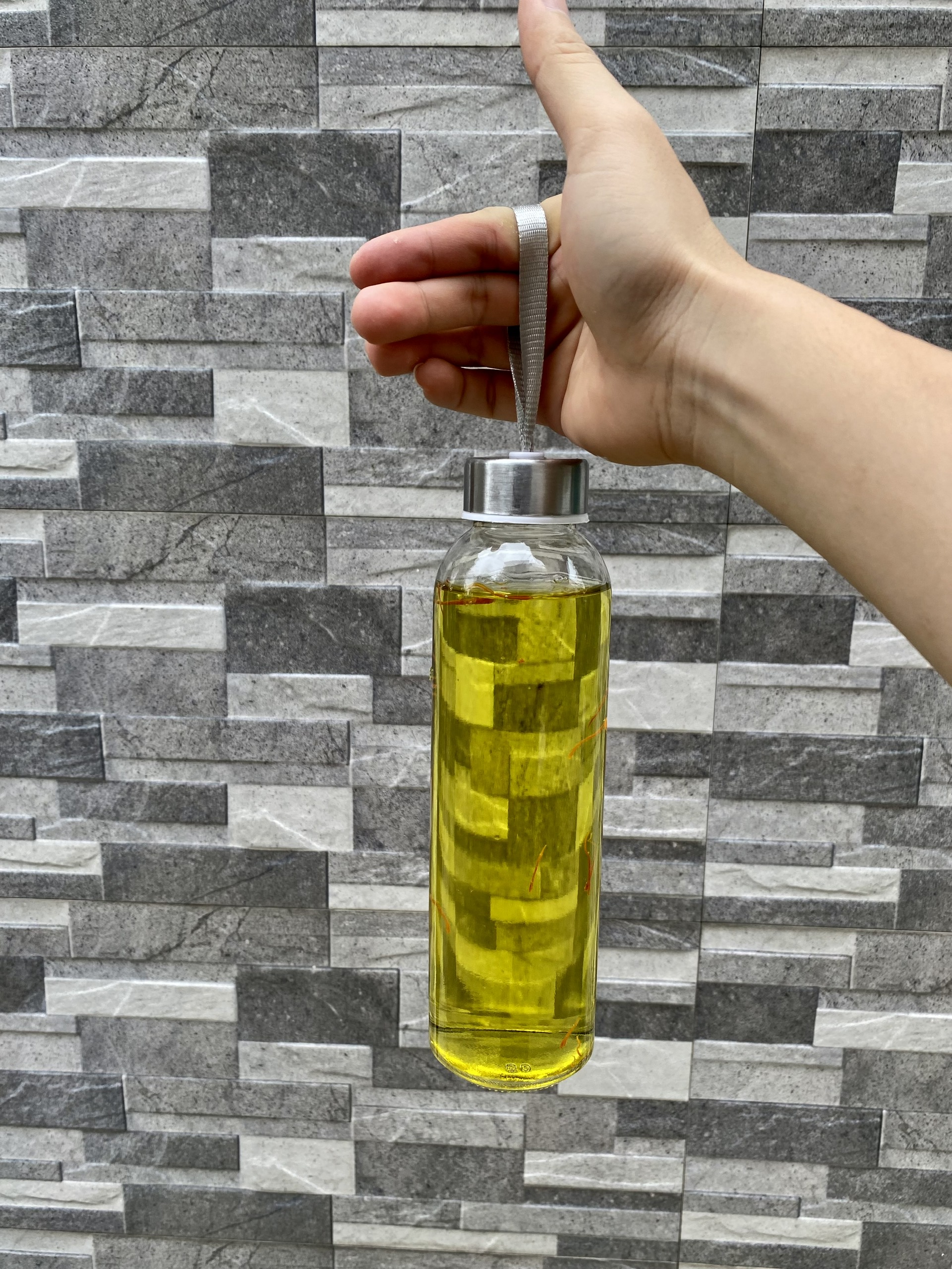 Bình thủy tinh đựng nước saffron Kingdom Herb cao cấp, bình thủy tinh có nắp đậy và dây xách tiện lợi - 500ml