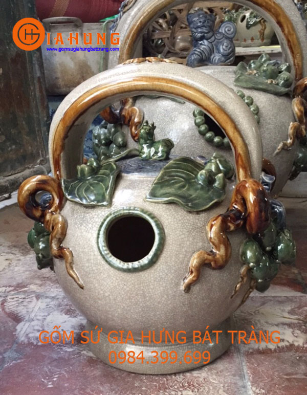- Hoa văn: đắp nổi trầu cau Không chỉ đơn giản là một vật chứa vôi để ăn trầu, bình vôi trải qua bao đời còn có mối liên hệ khăng khít với truyền thống và văn hoá, đặc biệt sự tích trầu cau và tục ăn trầu của dân tộc ta. XƯỞNG SẢN XUẤT GỐM SỨ GIA HƯNG BÁT TRÀNG Cơ sở 1: Xóm 5 Giang Cao – Bát Tràng – Gia Lâm – Hà Nội Cơ sở 2: Số 17/27 Võng Thị – Tây Hồ – Hà Nội Liên hệ : 0984.399.699 Hãy liên hệ với chúng tôi để có giá tốt nhất