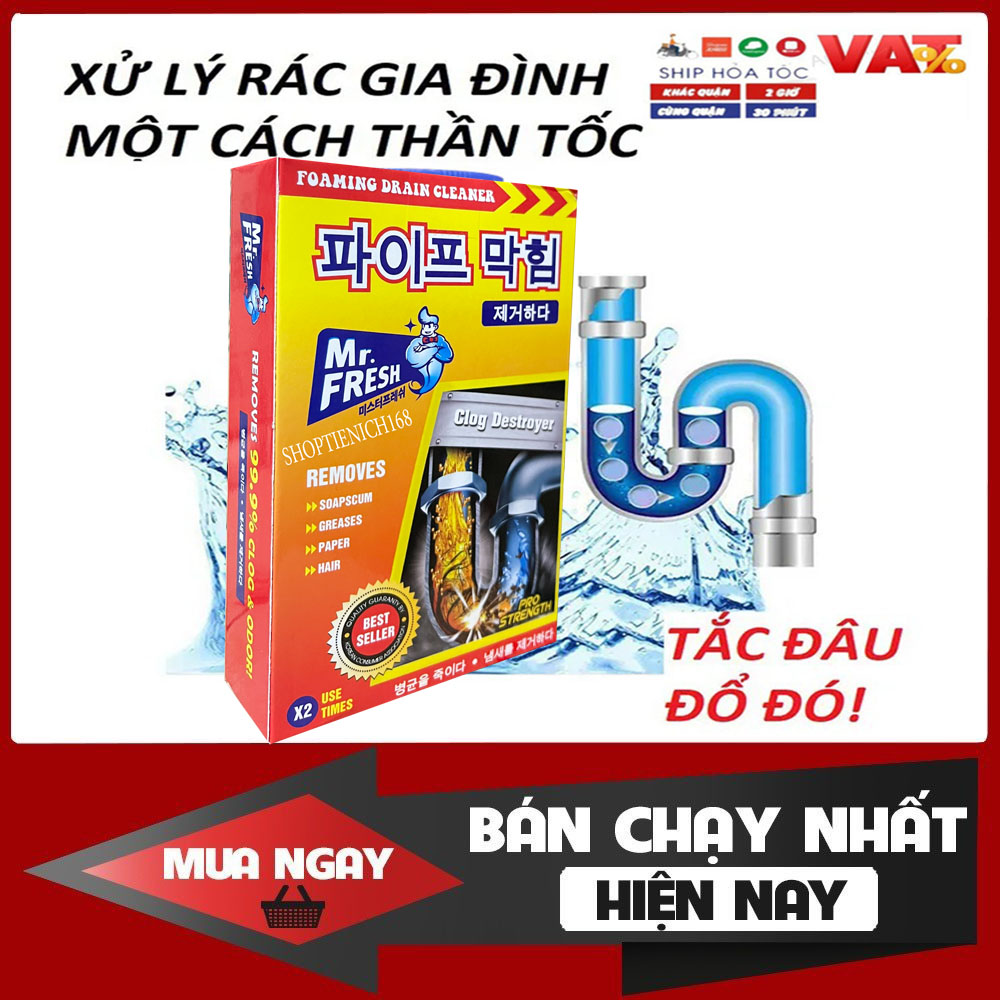 Thông Tin Sản Phẩm Tên Sản Phẩm : Hộp bột thông cống Mr Fresh Hàn Quốc 200g Công dụng : Thông tắc ống cống , ống thoát nước. Thành phần : Sodiumhydrochlorite, sdiumhydroxide, sodium silicate,