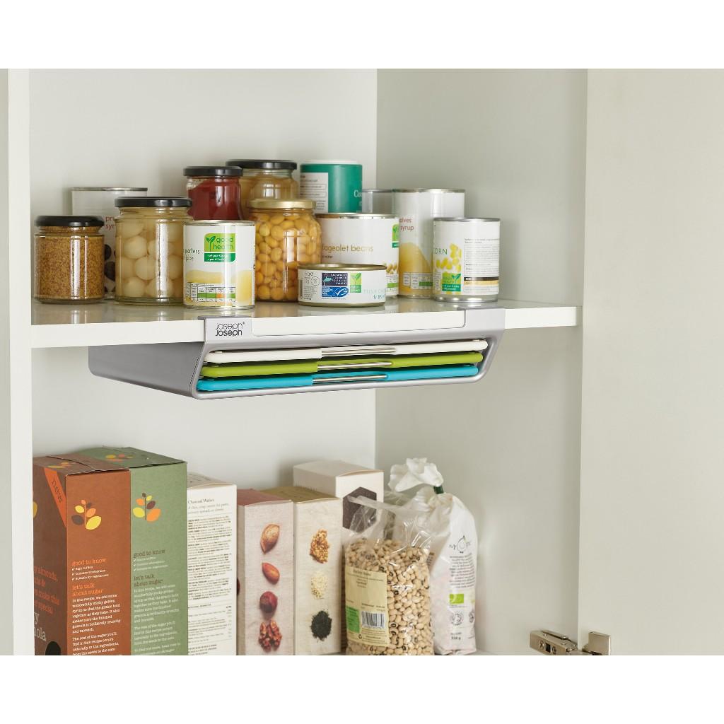 Thớt là vật dụng thiết yếu hàng ngày trong bếp, nhưng đối với những người thích giữ cho mặt bàn bếp sạch sẽ, Folio Slim mang đến một cách mới để cất giữ chúng. Bộ sản phẩm sáng tạo này, bao gồm ba loại thớt được mã hóa màu và thân thiện với dao, có hộp đựng mỏng – hãy chờ xem – móc vào kệ để tiết kiệm không gian lưu trữ, giữ cho thớt của bạn tránh xa mặt bàn bếp và trong tầm với dễ dàng.