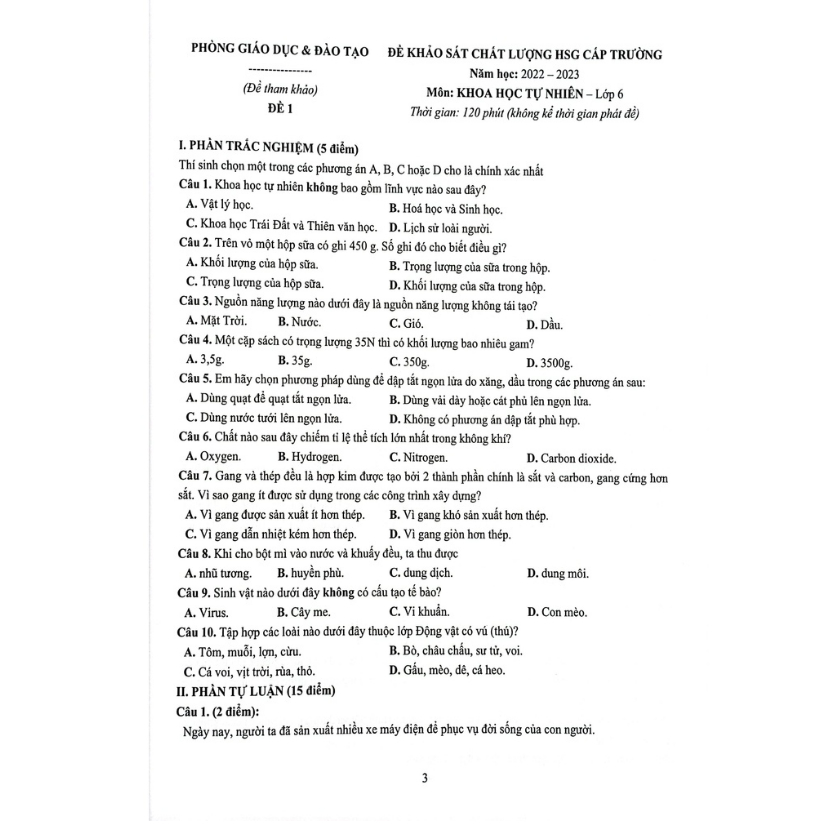 =================================== Bộ 30 Đề Thi Thử Học Sinh Giỏi Khoa Học Tự Nhiên 6 (Theo Chương Trình Giáo Dục Phổ Thông Mới) Năm học 2022-2023 là năm học đầu tiên áp dụng giảng dạy môn Khoa học tự nhiên 6 theo c