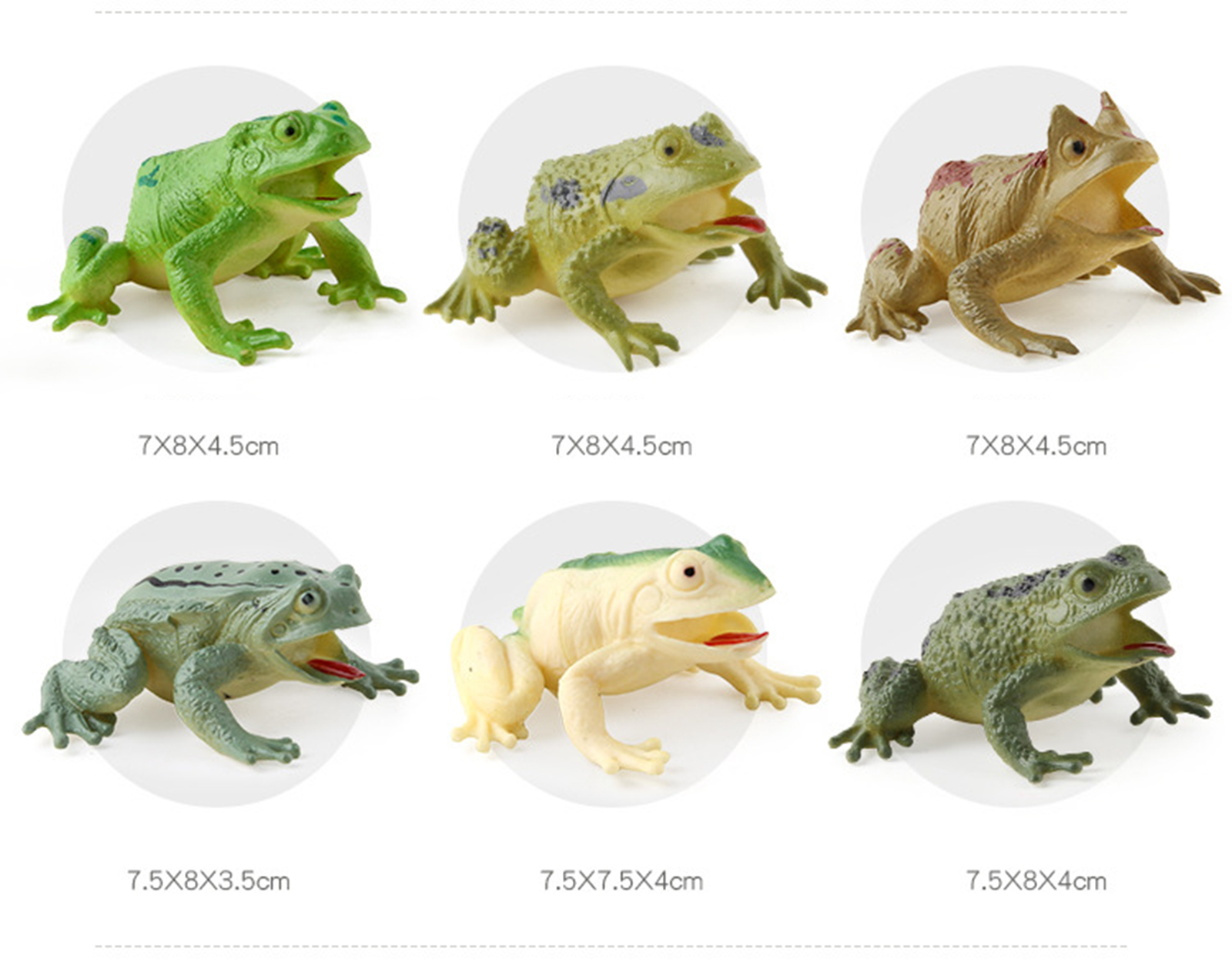 Bộ 6 đồ chơi Ếch Nhái giả Frog Toy size lớn nhiều màu cho bé ️ Chất liệu: Nhựa mềm, có còi bíp bíp ️ Kích thước trung bình: 4x7 cm ️ Màu sắc: Nhiều màu như trong hình ️ Trọng lượng đóng gói: 250 gram