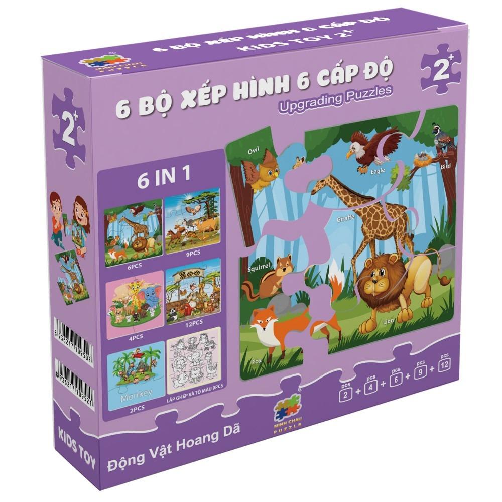 Tranh có độ khó tăng dần: 2 mảnh, 4 mảnh, 6 mảnh, 9 mảnh, 12 mảnh và tranh tô màu 9 mảnh, giúp bé từng bước phát triển tư duy. Trong hộp có 2 chân đế để bàn tiện dụng cho bé trang trí tác phẩm của m.ình.