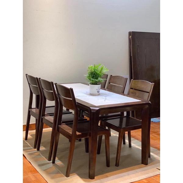 ✨Bộ bàn ăn gỗ sồi lau màu 6 ghế (miễn phí vận chuyển hn) tặng mặt kính