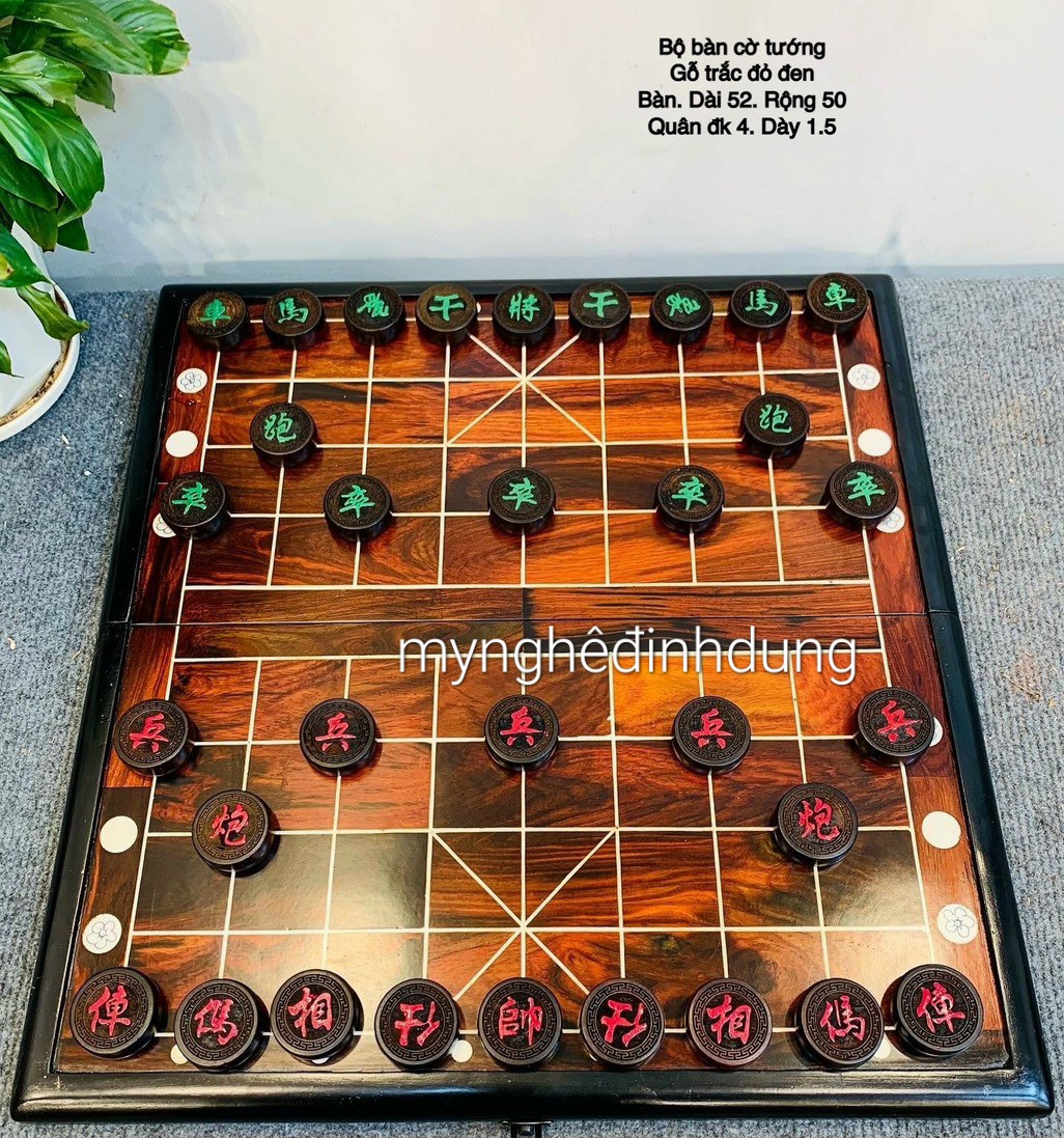 _ Bộ bàn cờ tướng +quân cờ được làm bằng chất liệu gỗ trắc đỏ đen tự nhiên 100% _ Kt bàn cờ 52×50 dầy 3cm _ Kt quân cờ 4.0×1.5cm _ Bộ bàn cờ