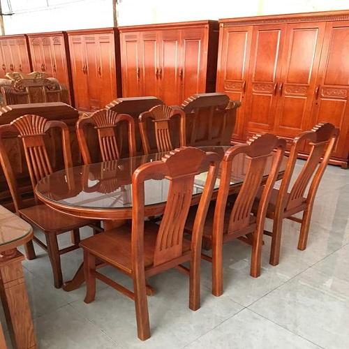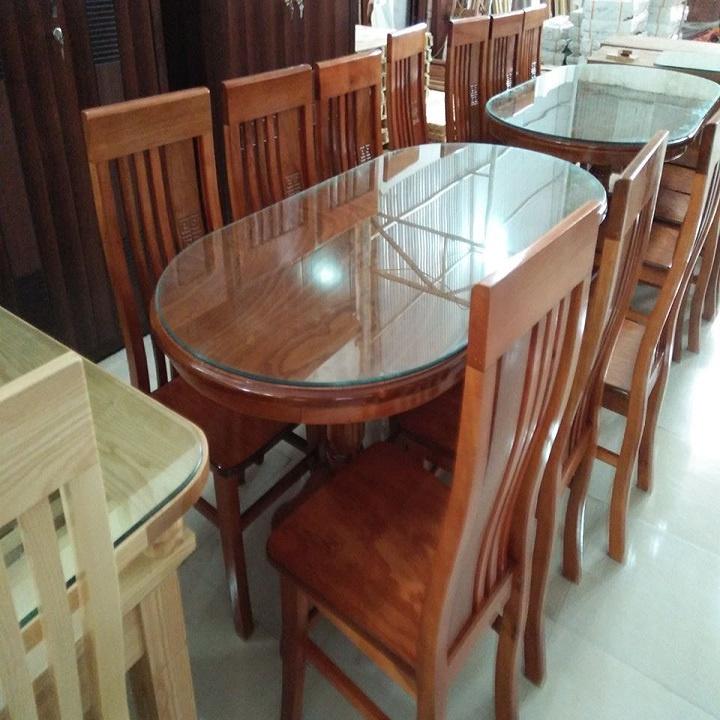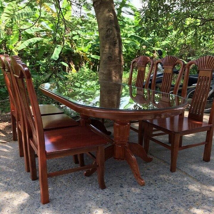 ✨bộ bàn ghế ăn gỗ sáu ghế bầu dục có kính bàn