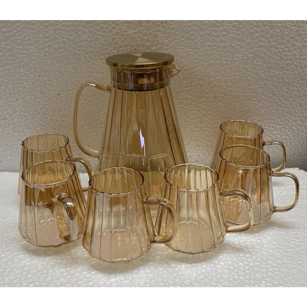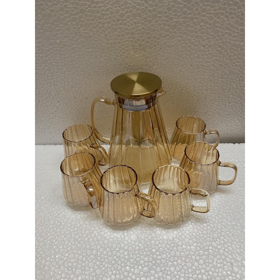 ✨BỘ BÌNH ĐỰNG NƯỚC UỐN KÈM 6 CỐC THỦY TINH MÀU VÀNG GOLD CHỊU NHIỆT CAO CẤP