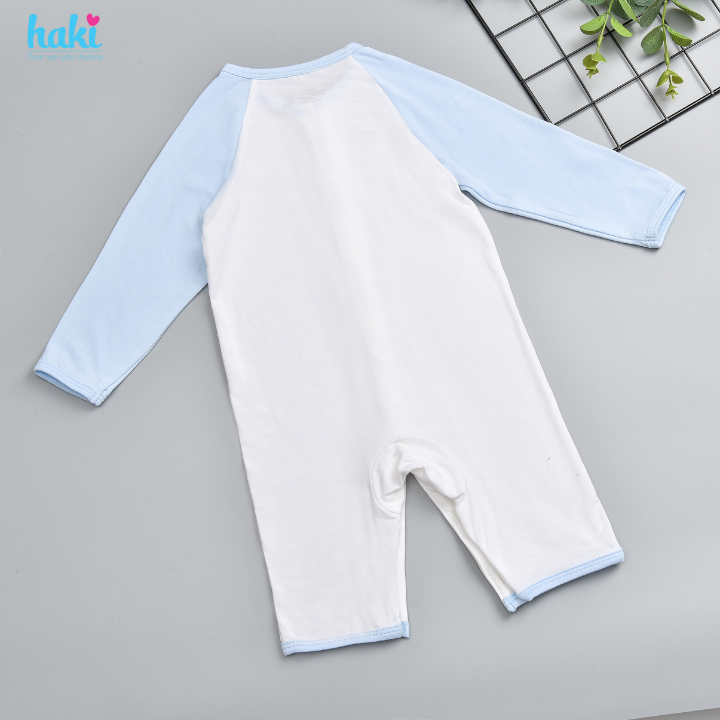 Haki sử dụng 100% cúc bấm nhập khẩu từ Nhật, mịn, lì và chắc chắn tuyệt đối. Điều này giúp ba mẹ dễ dàng thao tác khi thay trang phục cho bé, đồng thời để bé thoải mái khi lẫy, bò mà chẳng lo cứng cộm.