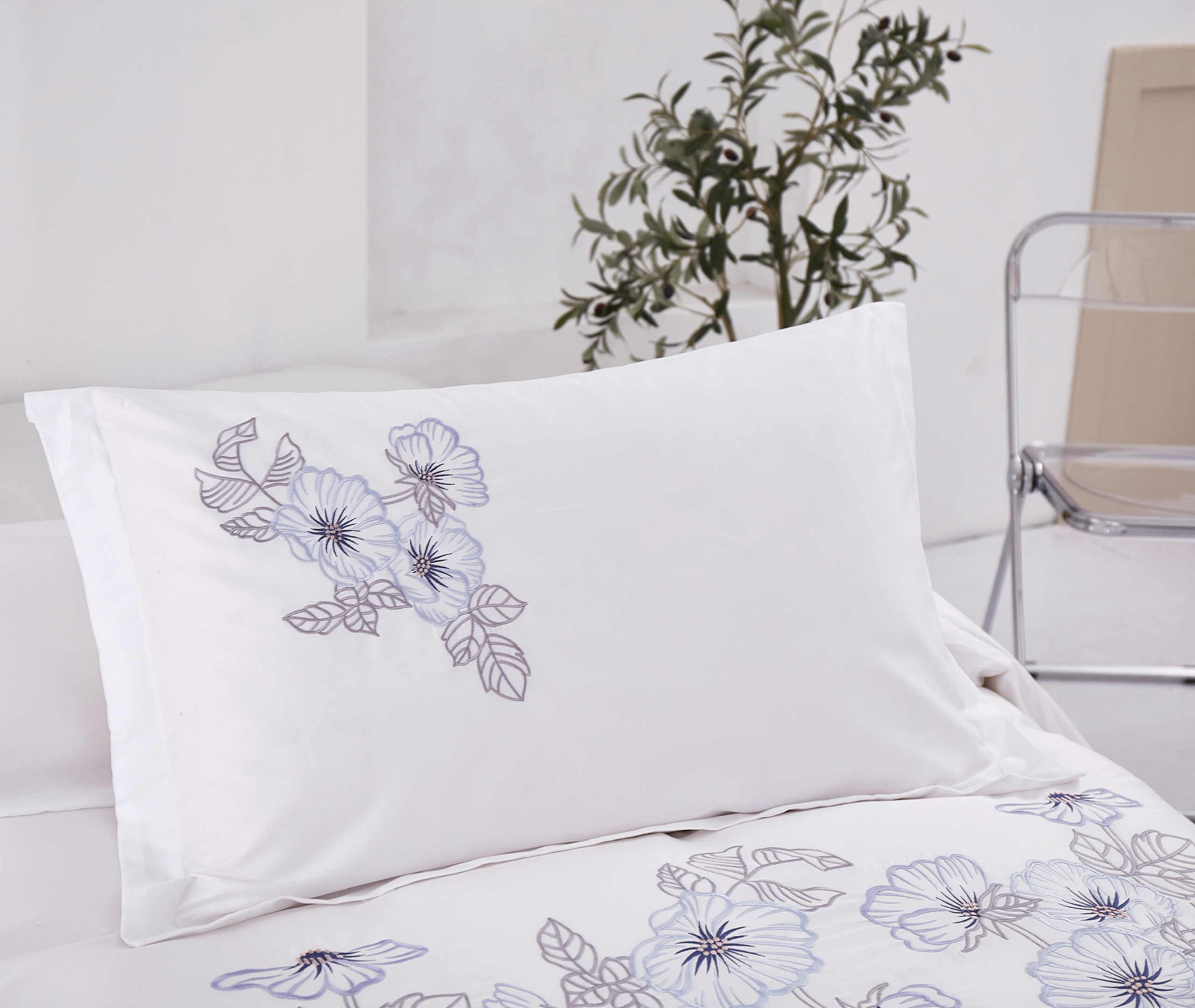 Set BELLA BLUE SKY với họa tiết thêu đơn giản ,mang đến sự tinh tế và tối giản . chất liệu Lụa cotton Satin cao cấp T300, mềm mát , thoáng khí tuyệt vời , ngăn vi khuẩn , thấm hút mồ hôi tốt, dễ bảo quản, sử dụng và đặc biệt an toàn thân thiện cho mọi làn da.