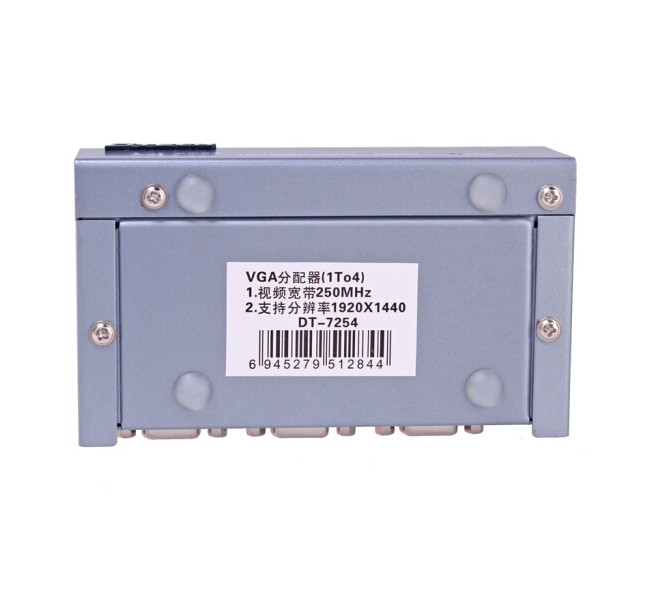 Đầu vào : 1 chiều VGA 15DHF đầu ra : 4 chiều VGA giao diện đầu ra 15HDF RGB kênh tương tự: băng thông 250MHz độ đầu vào: 0.5-1Vp-p trở kháng đầu vào: 75Ω mức sản lượng 0,5-1Vp-p trở kháng đầu ra : 75ohm ngang và dọc kênh đồng bộ: Đầu vào 0.7-1Vp-p dòng tần số :30-100K tần số lĩnh vực :43-120K mức sản lượng tương thích với TTL hỗ trợ độ phân giải: 1920 × 1440 khoảng cách truyền dẫn hiện tại: 1000mA