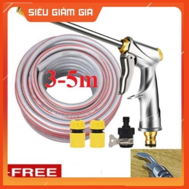 ✨Bộ dây vòi xịt nước rửa xe,tưới cây .tăng áp 3 lần,loại 3m,5m 206701-2 đầu đồng,cút,nối nhựa đen+ tặng mở chai