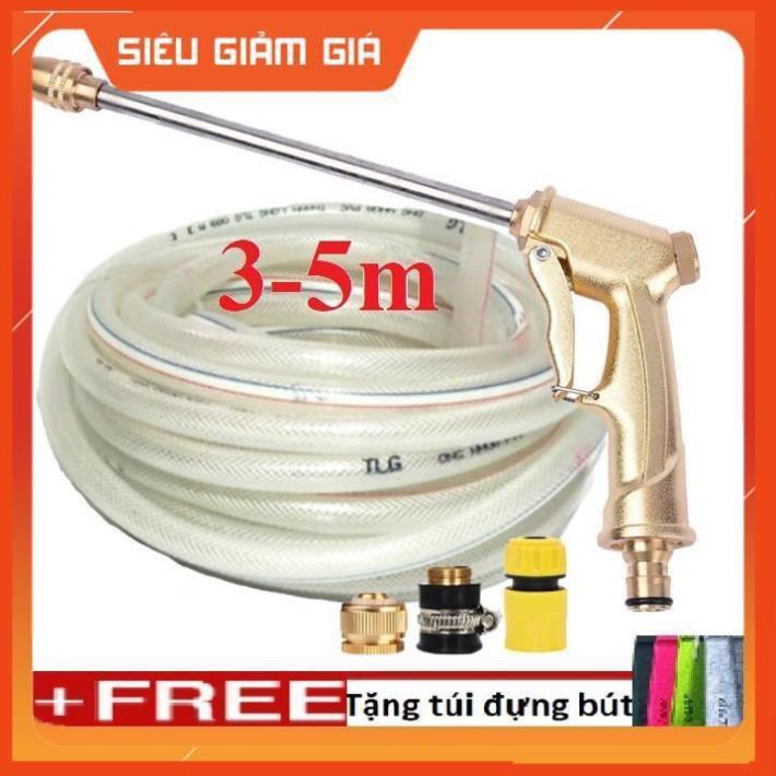 ✨Bộ dây vòi xịt nước rửa xe,tưới cây, tăng áp 3 lần,loại 3m,5m 206701-3 đầu đồng,cút,nối đồng+tặng túi đựng bút