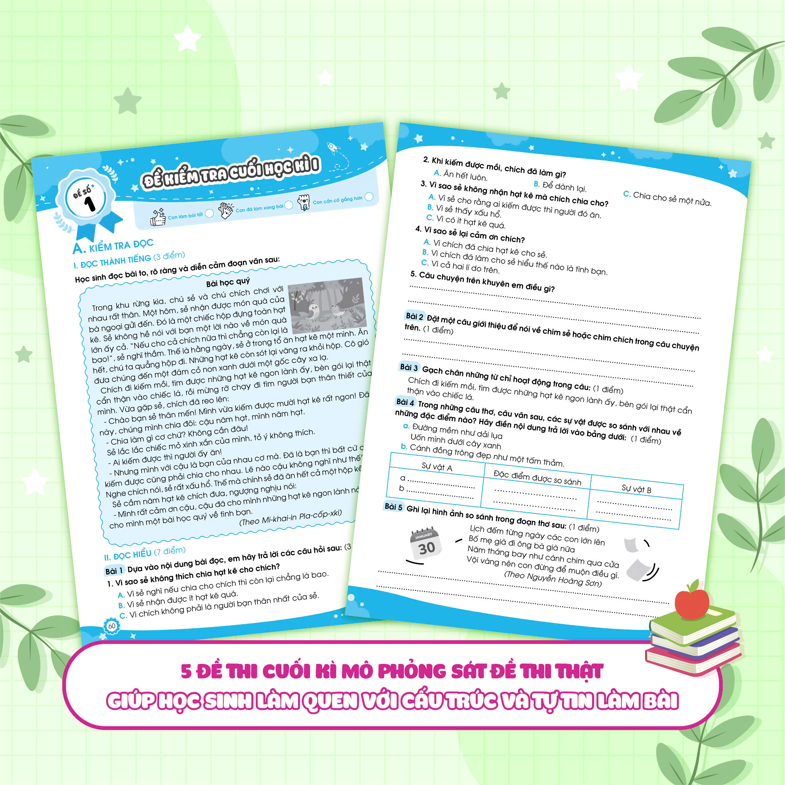 Các đề ôn tập, đề kiểm tra được biên soạn phù hợp với nội dung học sinh học trên lớp, đồng thời bám sát mục tiêu, yêu cầu cần đạt trong từng giai đoạn học tập.