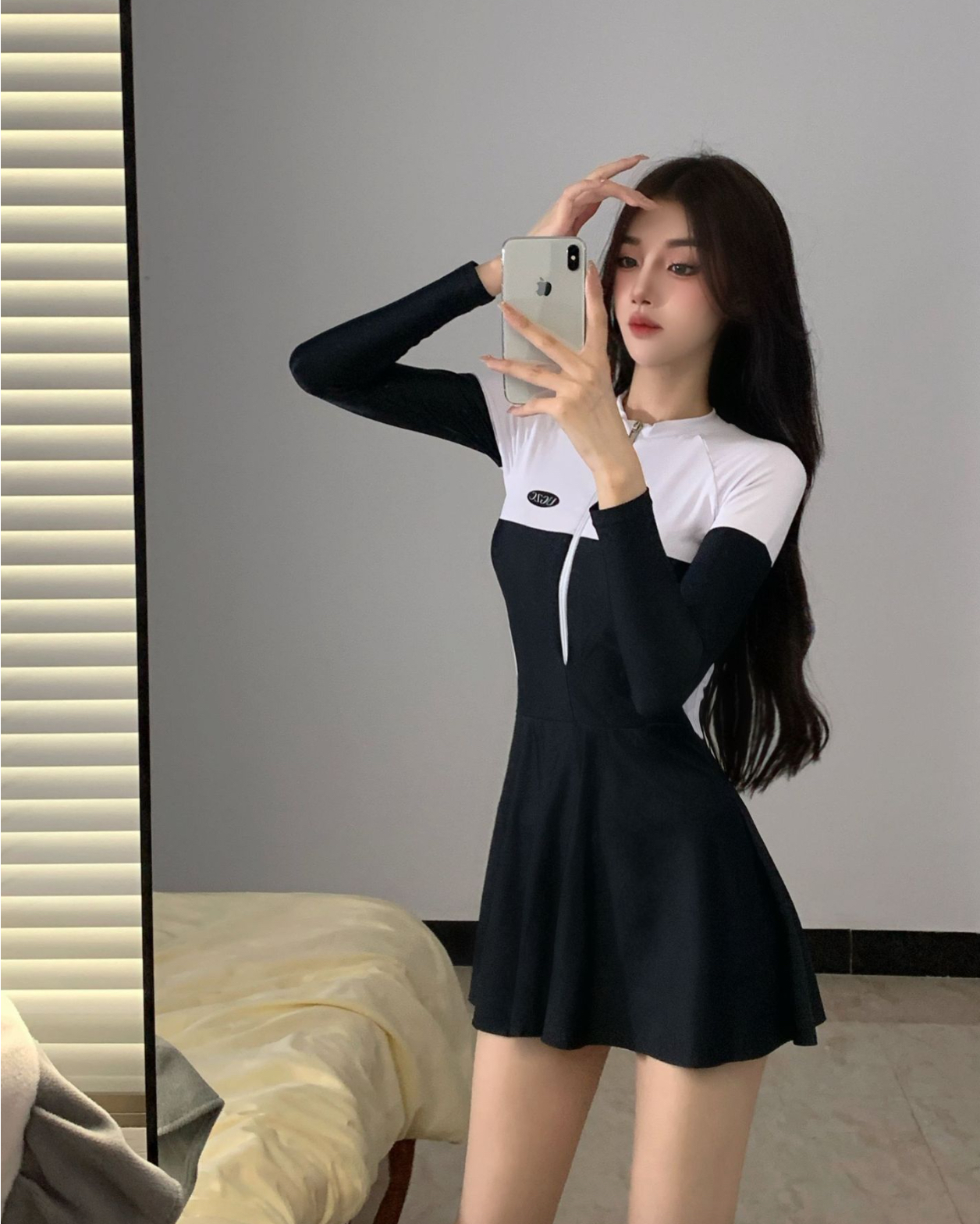 ✨Bộ đồ bơi bikini nữ 1 mảnh kín đáo đi tắm biển giấu bụng váy liền áo dài tay chống nắng - B.27
