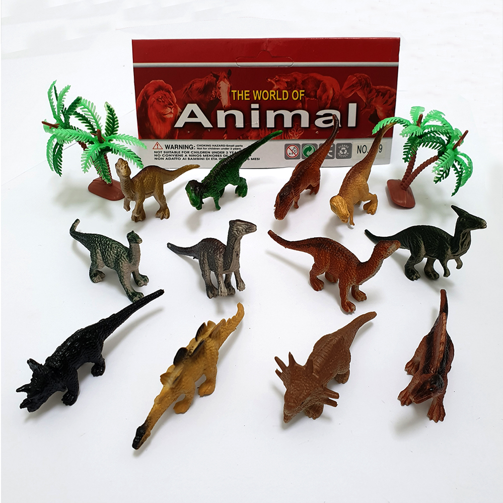 ✨Bộ đồ chơi 12 mô hình khủng long mini Animal World 129 kèm cây trang trí (4x8 cm)