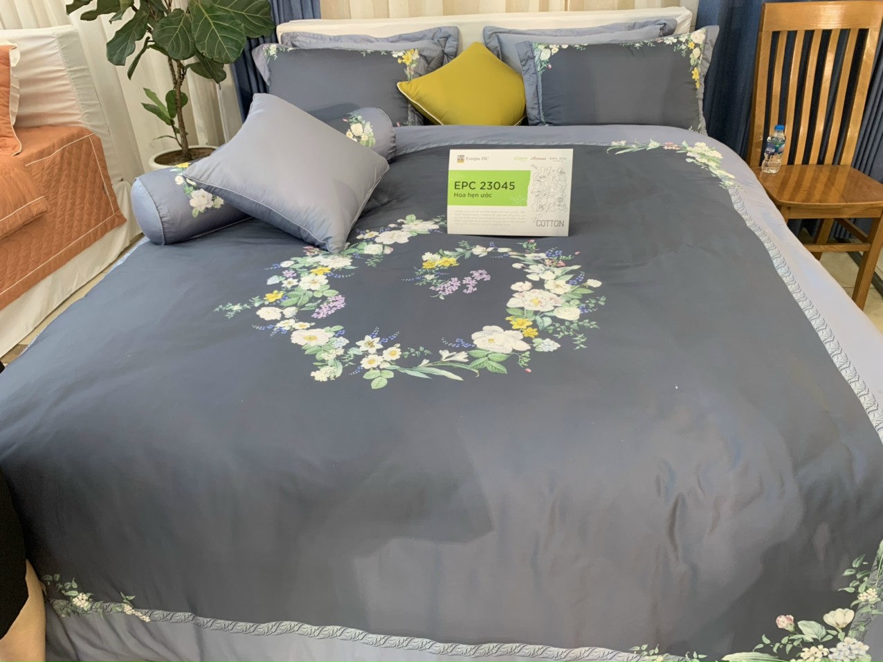 ESC19002 thuộc bộ sưu tập 2019 Chất liệu: Cotton satin Xuất xứ : Việt Nam Mô tả: Mẫu chăn ga lấy cảm hứng từ hoa cỏ thiên nhiên mùa xuân. Chất vải coton 60 thoáng mát