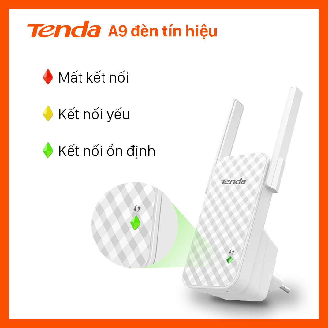 Tenda A9 là sự lựa chọn hoàn hảo để cung cấp tín hiệu mạnh mẽ ở những khu vực sóng yếu nhưng khó khăn trong việc lắp đặt thiết bị Wifi thông thường. Mở rộng vùng