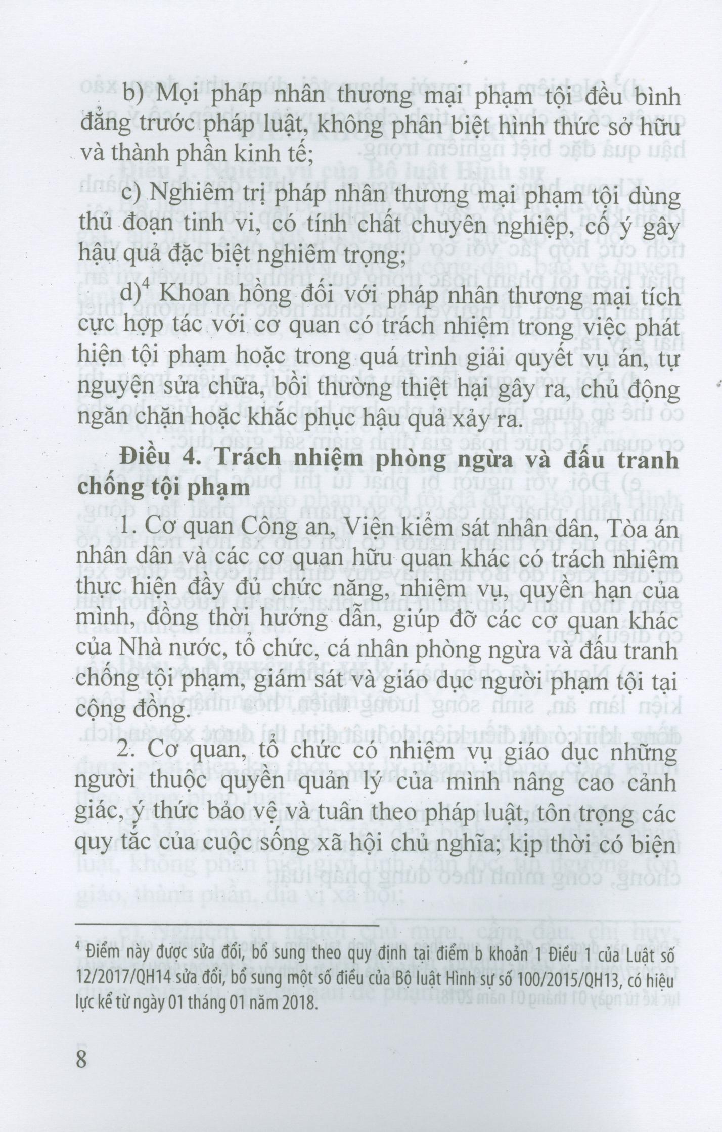 - Chỉ pháp nhân thương mại nào phạm một tội đã được quy định tại Điều 76 của Bộ luật này mới phải chịu trách nhiệm hình sự. Điều 3. Nguyên tắc xử lý