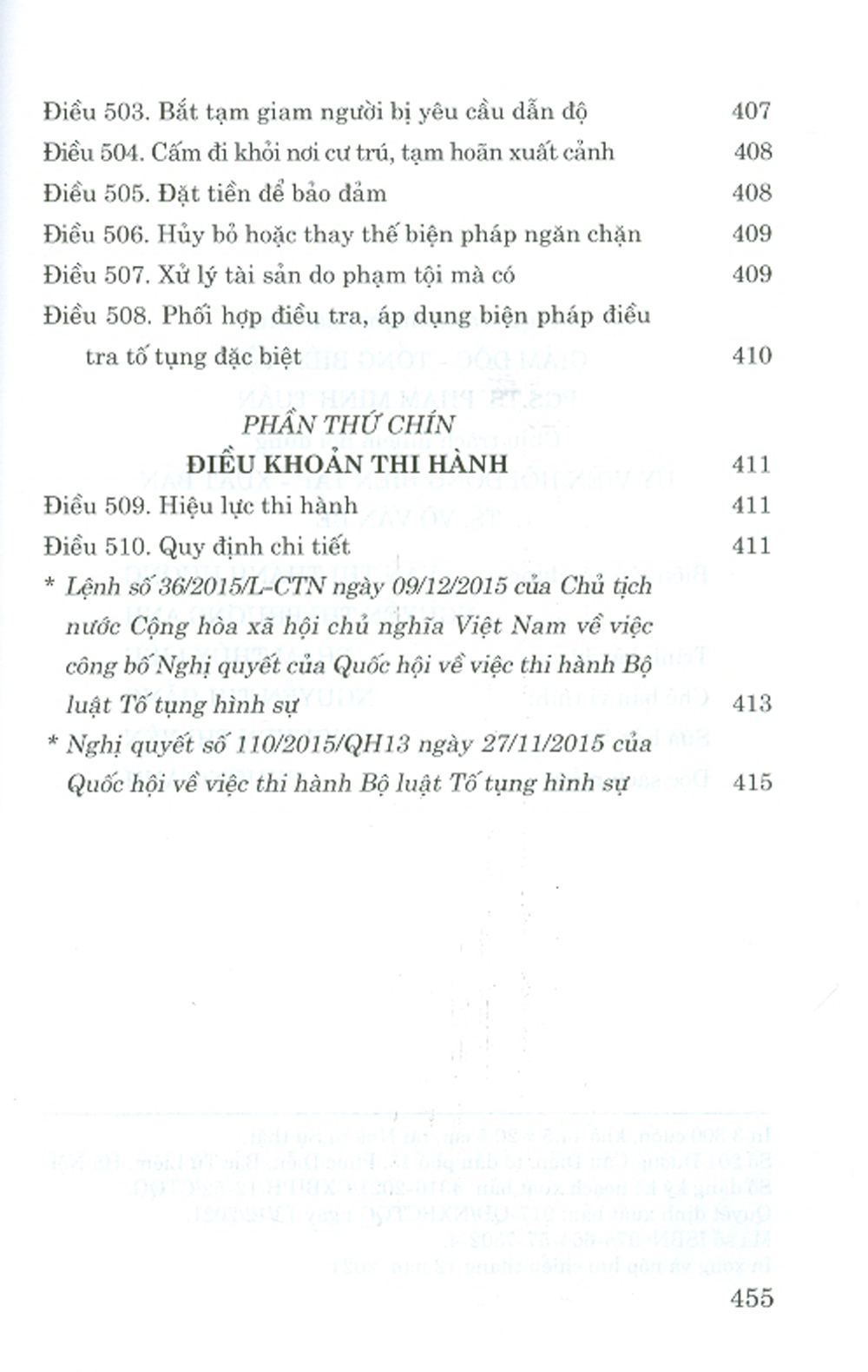 Bình Luận Khoa Học Bộ Luật Tố Tụng Hình Sự Năm 2015 (Tái Bản) Bộ luật tố tụng hình sự 2015 được Quốc hội thông qua ngày 27-11-2015, có hiệu lực từ ngày 1-1-2018. Việc