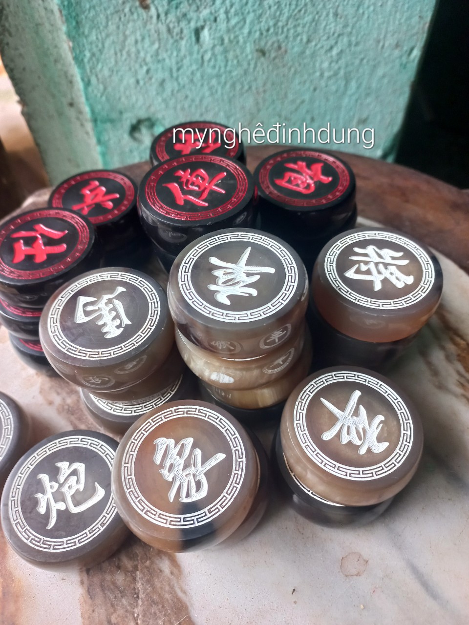 Bộ quân cờ sừng được làm bằng chất liệu sừng trắng ,sừng đen tự tự nhiên 100% Kt mặt tròn 4.0×1.2cm kt mặt tròn 4.3×1.2cm Và có nhiều kích thước khác ,khách muốn được nhắn tin cho nhà bán ,nhà bán phản hồi lại gửi đúng mẫu Quân cờ được chạm khắc 2 mặt vô cùng tỉ mỉ ,tinh xảo kỳ công ,đi hầu hết tất cả mọi chị tiết góc ngách hoa văn ,của quân cờ ,đạt độ chính xác cao .Quân cờ được làm và thiện từ những người thợ giàu kinh nghiệm cũng như tay nghề cao trong làng nghề truyền thống.