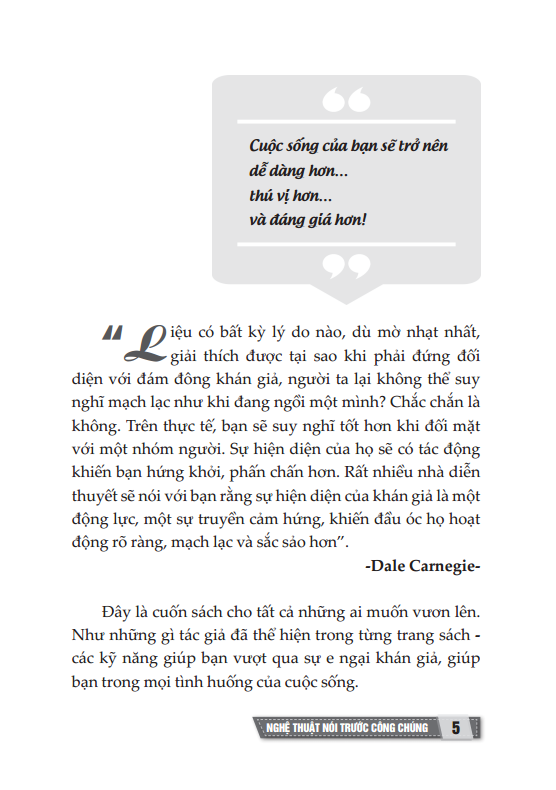 - Nghệ thuật nói trước công chúng Giao tiếp là nghệ thuật có ảnh hưởng lớn đến hàng triệu cá nhân trong xã hội từ những diễn giả, chính trị gia, nhà quản lý đến học sinh, sinh viên hay nhân viên bán hàng… Nghệ thuật nói trước công chúng là một tác phẩm xuất sắc về giao tiếp, chinh phục công chúng của Dale Carnegie – tác giả cuốn Đắc nhân tâm nổi tiếng. Những phương pháp giao tiếp, diễn thuyết có giá trị thực tiễn trong tác phẩm sẽ mang lại cho bạn mối quan hệ bạn bè, khách hàng tốt hơn trong công việc và cuộc sống. Phương pháp thuyết phục được kiểm chứng từ tác giả cuốn sách bán chạy nhất. Làm thế nào để lôi kéo bạn bè và gây ảnh hưởng đến người khác?