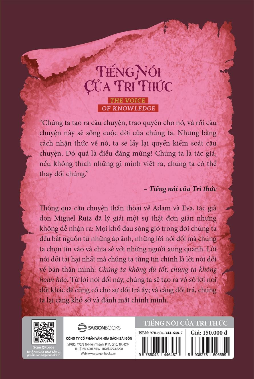 Trong Tiếng nói của tri thức, don Miguel Ruiz nhắc nhở chúng ta về một sự thật sâu sắc và đơn giản: Cách duy nhất để chấm dứt đau khổ về cảm xúc và khôi phục lại niềm vui sống là ngừng tin vào những lời nói dối - chủ yếu là về bản thân. Dựa trên sự khôn ngoan của Toltec cổ xưa, cuốn sách phát triển bản thân này chỉ cho chúng ta cách khôi phục niềm tin vào sự thật và trở về với lẽ thường của chính mình.