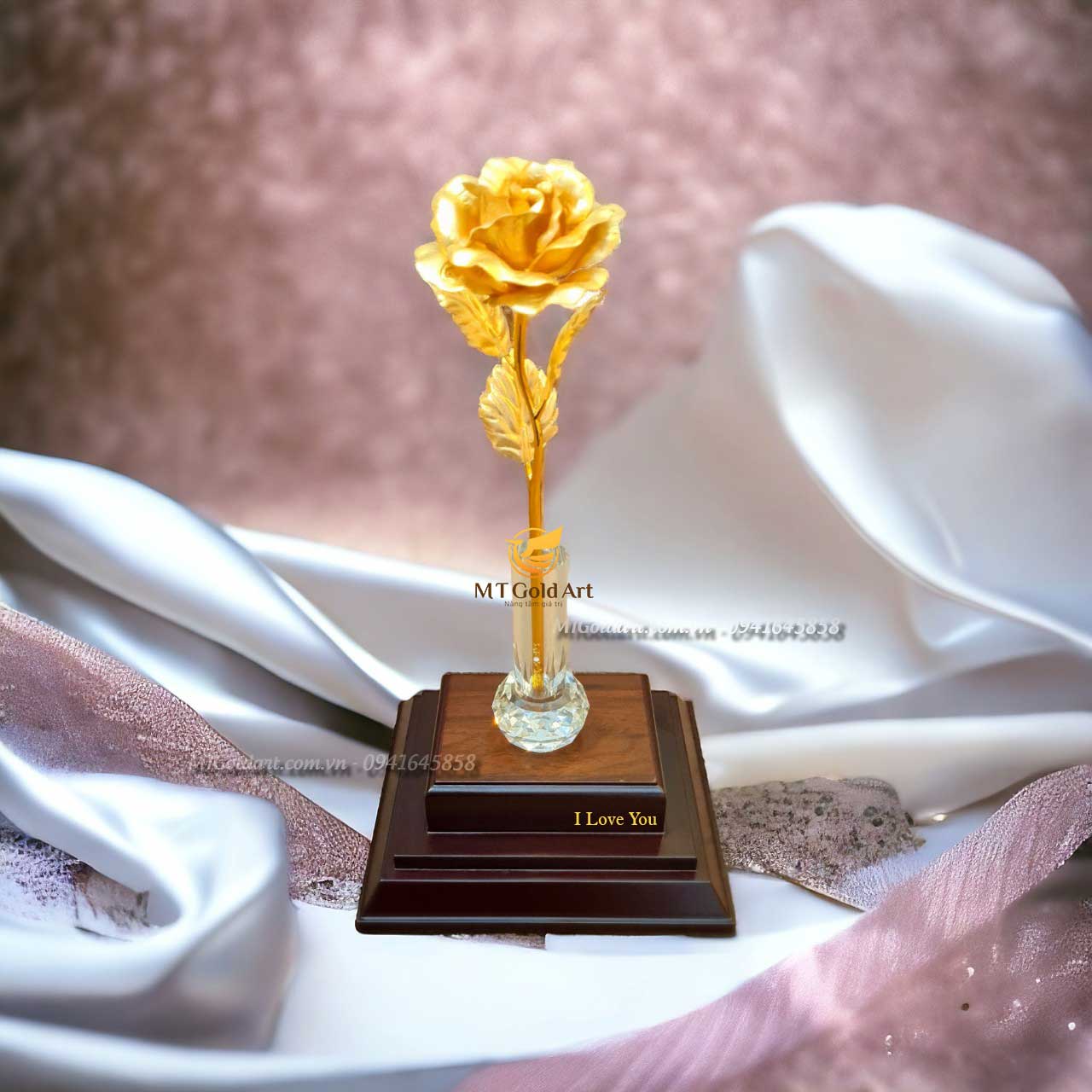 Mỗi bông hoa hồng đều được tạo ra dưới đôi bàn tay lành nghề và tỉ mỉ của các nghệ nhân, với nhiều công đoạn khác nhau, tương đương với 4 ngày làm thủ công từng cánh hoa, từng chiếc lá mong manh rồi kết hợp tất cả lại, để tạo nên một bông hoa tuyệt tác của thiên nhiên. Hoa hồng dát vàng – là một món quà độc đáo và đầy ý nghĩa để bạn dành tặng cho ngày lễ tình nhân, hoặc bạn cũng có thể dành tặng cho người mẹ yêu thương của mình vào ngày sinh nhật, ngày kỷ niệm hay ngày cưới… hoặc bất kỳ một dịp đặc biệt nào đó. Thông tin sản phẩm  Thương hiệu: MT Gold Art Bộ sưu tập:  Bó hoa hồng dát vàng Chất liệu: Dát vàng 24k Dịp tặng quà: Quà sinh nhật, quà kỷ niệm khách hàng, quà 20/11, quà 20/10, quà 8/3, quà cưới, …. Quà tặng cho: sếp, khách hàng nước ngoài, đối tác, vợ, mẹ, bạn gái,… Kích thước : 25cm Chủng loại: Trang trí để bàn Hộp đựng: Sang trọng, làm quà tặng