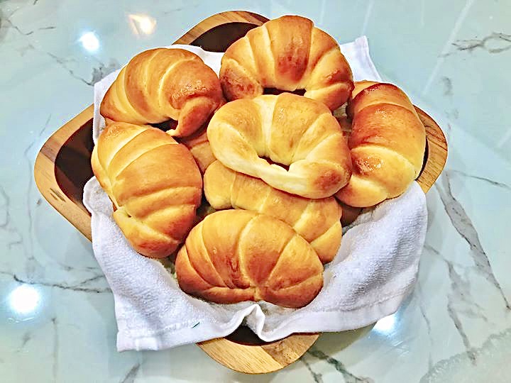 - Làm Bánh Mì Ngọt: Nguyên liệu và dụng cụ làm bánh mì ngọt Bột Chuyên dụng trộn sẵn HÒA KÝ 500 gr Dầu ăn ( 4 muỗng canh ) 30 gr Sữa tươi không đường 220 ml Muối ăn ( ½ muỗng cà phê ) 5 gr Đường ăn ( 5 muỗng canh đầy ) 100 gr Bơ lạt 40 gr Trứng gà ( chừa 1 lòng đỏ để quét mặt bánh) 3 trứng Thau trộn + tô + cây cọ quét + khuôn làm bánh + muỗng + lò nướng + cây cán bánh + chén + miếng nhựa cắt bột. Bước 1: Cho 500gr Bột Chuyên Dụng trộn sẵn Hòa Ký + 30gr Dầu ăn + 5 gr Muối vào thau + 40 gr Bơ lạt ,vào thau trộn đều. Lấy tô : Đập 3 trứng gà ( vớt ra 1 lòng đỏ cho vào chén để dành quét mặt bánh) + Đường 100gr + sữa tươi không đường 220ml à đánh quậy riêng đến tan rồi đổ vào giữa thau Bột hỗn hợp trên , khuấy đều, quyện vào nhau thành 1 khối bột. Bước 2: Rắc 1 ít bột ra bàn, lấy khối bột đã trộn ra nhồi.Nhồi bột thật kỷ, mạnh tay,1 tay giữ, 1 tay cầm bột kéo ra, gập bột lại, xoay khối bột và lặp lại. Đến khi bột mịn không dính tay thì có thể cầm khối bột đập mạnh vài lần , để tạo sớ dai . Bước 3: Đậy kín,ủ 40 phút-60 phút ( tùy nhiệt độ thời tiết) thấy bột nở lên gấp đôi là được. -Kế tiếp, lấy khối bột ra nhồi mạnh tay , 1 tay giữ, 1 tay cầm bột kéo ra, gập bột lại, xoay khối bột lần nữa, vo tròn rồi đậy kín ủ tiếp 20 phút nữa, bột sẽ nổi dậy lên thêm. Bước 4: Thoa 1 ít dầu vào bàn tay , lấy khối bột ra chia thành 3 phần bằng nhau. Bước 5 : Tạo hình bánh ( hình con Cua, bông mai, bánh nhiều lớ)