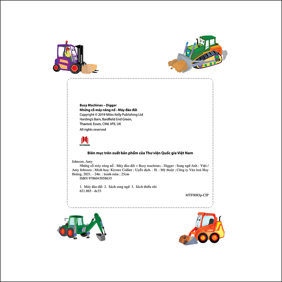 - "Busy Machines - Digger: Những Cỗ Máy Năng Nổ - Máy Đào Đất" là một cuốn sách thú vị và đầy màu sắc dành cho trẻ em, được thiết kế để giới thiệu cho các bạn nhỏ về các loại máy móc trong môi trường xây dựng. Sách không chỉ giúp trẻ em hiểu biết về các máy móc và công cụ qua hình ảnh sinh động mà còn tạo điều kiện cho việc học tập song ngữ Anh - Việt, mang lại lợi ích giáo dục vượt trội.