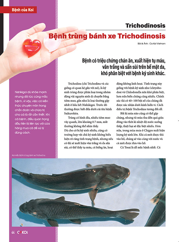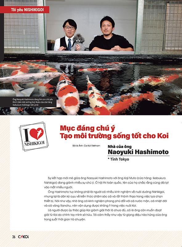“CÁ KOI” là phiên bản tiếng Việt của Gekkan Nishikigoi (Koi Magazine do Shinkokai Nhật Bản phát hành), được phát hành định kỳ 3 tháng tại Việt Nam. Có trong tay quyển “CÁ KOI” nghĩa là có trong tay những thông tin mới, chuẩn xác và chính thống nhất về Koi nói chung, ngành Koi tại Nhật Bản và Việt Nam nói riêng.