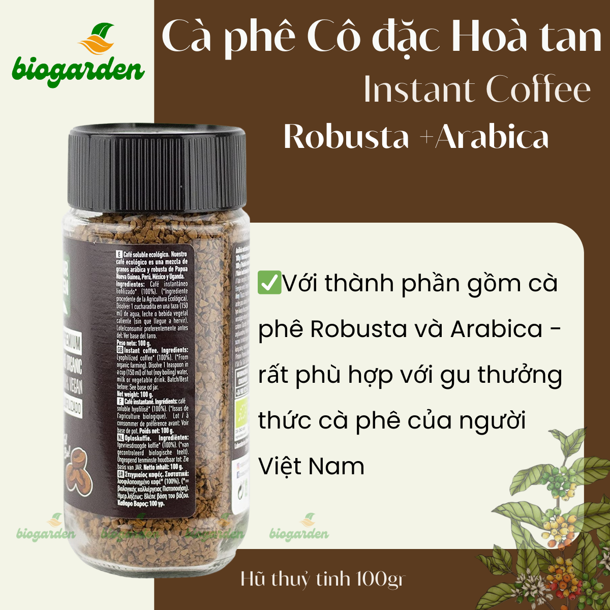 - Được chế biến theo công nghệ tiên tiến nhất trên thế giới, giúp giảm thiểu nguy cơ sức khỏe mà người sử dụng café thường xuyên dễ mắc phải. Thành phần: 100% cà phê hòa tan nguyên chất hữu cơ Robusta và Arabica Hướng dẫn sử dụng: