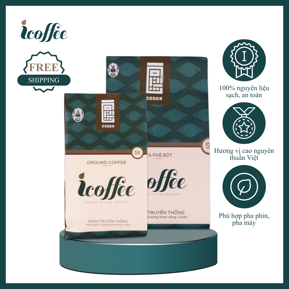 Cà Phê Robusta Truyền Thống icoffee 250g Phù Hợp pha phin, có vị đắng đậm, mạnh, thơm nồng;
