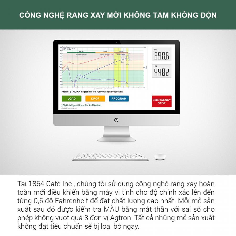 Cà phê thương hiệu 1864 CAFÉ  là dòng  cà phê tinh khiết, hoàn toàn không tẩm hóa chất bảo quản, hóa chất tạo bọt, tạo vị, tạo hương cà phê, vani, chồn, sô cô