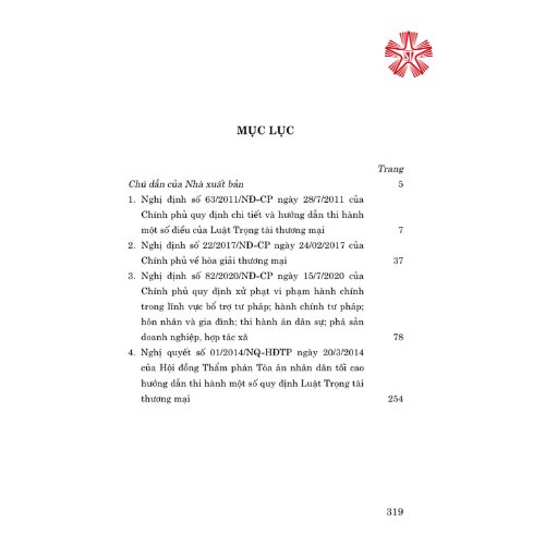Cuốn sách Các quy định pháp luật hướng dẫn Luật Trọng tài thương mại giới thiệu đến bạn đọc những văn bản hướng dẫn thi hành hiện hành và cơ bản nhất về trọng tài thương mại.