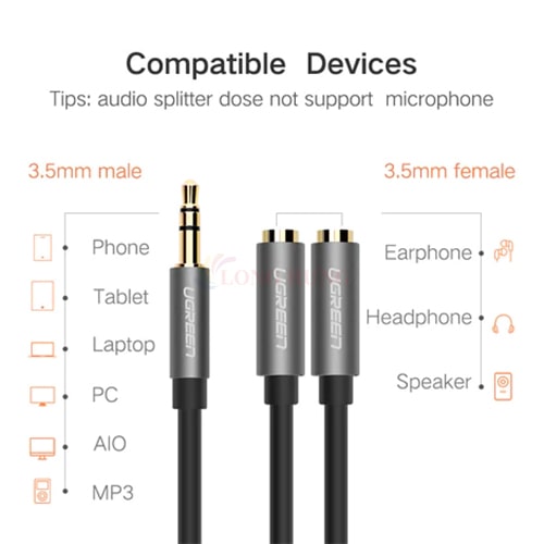 - Sản phẩm chính hãng Ugreen - Cổng chuyển 3.5mm sang 2 đầu tai nghe tiện lợi - Mang đến âm thanh trung thực - Đầu cáp mạ vàng chống oxy hoá - Khả năng