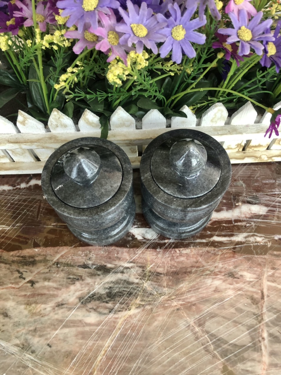 ✨Cặp hũ đựng muối, gạo thờ cúng đặt bàn thờ ông thần tài thổ địa đá cẩm thạch vân đen