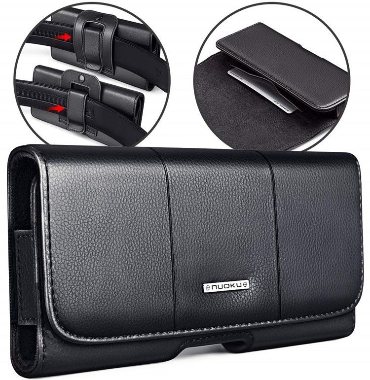 Case bao da đeo nịt da thật cho iPhone 11 12 13 14 Pro Max / 14 Plus / Note 20 / S22 / S23 ultra và các dòng máy từ 6.7 inch trở xuống hiệu Nuoku Elegant and Royal phiên bản đeo thắt lưng - chất liệu da thật cao cấp, có ngăn đựng thẻ, nắp gập hít nam châm