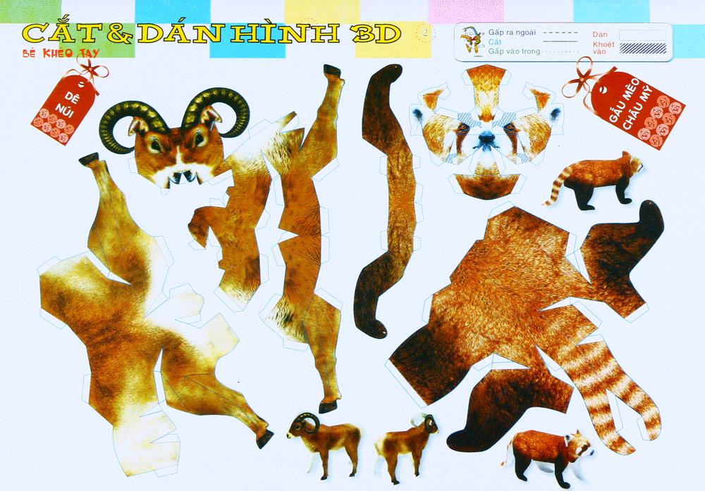 Với những mẫu hình có trong bộ sách, bé chỉ việc dùng kéo cắt theo đường viền định sẵn, sau đó gấp theo hướng dẫn, rồi lắp ghép và dùng keo dính cố định chúng lại với nhau để tạo nên những hình 3D vô cùng ngộ nghĩnh, đáng yêu, như: tháp Ep-phen, bò tót, khỉ đầu đỏ, sóc, hổ, rùa, gà, vẹt, chim cánh cụt, voi ma mú Đó sẽ là những món đồ thật tuyệt để bé trang trí góc học tập của mình, hoặc làm quà tặng cho bạn bè và những người thân yêu trong gia đình.