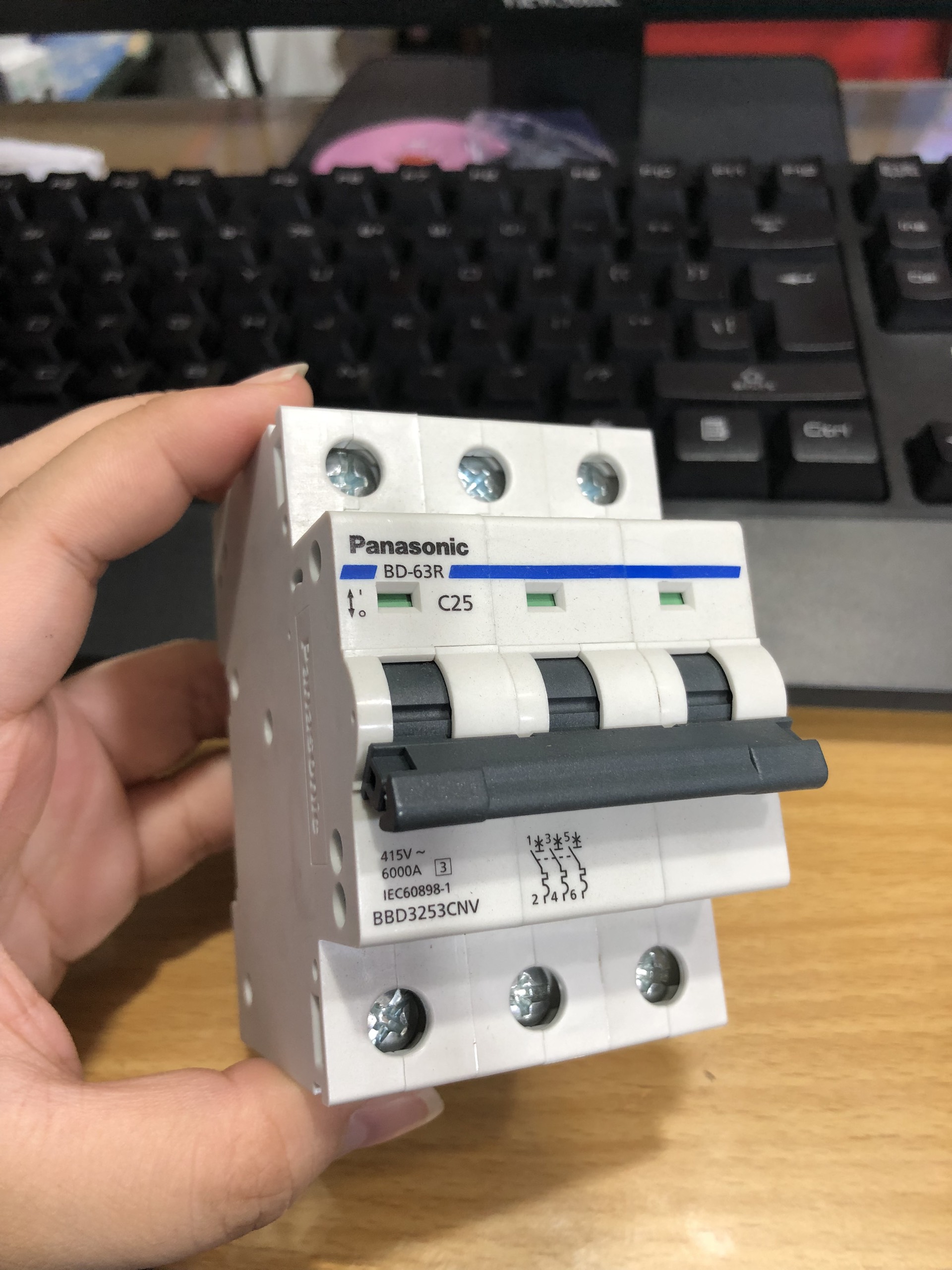 Cầu dao 3 pha panasonic BBD3633CNV được sản xuất bởi một quy trình kĩ thuật công nghệ vô cùng nổi tiếng và hiện đại là tạo nên chất lượng tuyệt vời cho sản phẩm. Cầu dao 3 pha panasonic BBD3633CNV ngắt điện nhanh và một cách an toàn khi dòng điện gặp sự cố bất ngờ như hiện tượng ngắn mạch hay chạm mạch. ĐẶC ĐIỂM SẢN PHẨM:   Điều gì đã làm cho sản phẩm cầu dao 3 pha panasonic BBD3633CNV trở thành sản phẩm “hot” nhất trên thị trường tiêu thụ điện hiện nay do cầu dao được sản xuất bởi một quy trình kĩ thuật công nghệ vô cùng nổi tiếng và hiện đại là tạo nên chất lượng tuyệt vời cho sản phẩm.   Khi được hỏi đến tiêu chí nào ở sản phẩm cầu dao 3 pha panasonic BBD3633CNV mà bạn lựa chọn? Thì đa phần khách hàng nào cũng trả lời với chúng tôi rằng “chất lượng, kiểu dáng mẫu mã đẹp và ấn tượng”. Vậy còn bạn thì sao hãy đưa ra cho mình một tiêu chuẩn cụ thể để sở hữu những dòng sản phẩm chất lượng này nhé!   Cầu dao 3 pha Panasonic BBD3633CNV Luôn đảm bảo tất cả muc tiêu vì khách hàng, vì an toàn cũng như chất lượng sử dụng một cách tốt nhất. Chất liệu nhựa này được làm từ nhựa Polymer, một hợp nhựa rất tốt khi sử dụng điện.   Dòng sản phẩm này được cấu tạo và thiết kế giúp cho việc ngắt điện nhanh hơn và một cách an toàn hơn khi dòng điện gặp sự cố bất ngờ như hiện tượng ngắn mạch hay chạm mạch để giúp cho người sử dụng sản phẩm được an toàn nhất và tránh hưởng đến các thiết bị điện còn lại gây ra hiện tượng xấu.   Tuy sản phẩm được trang bị rất nhiều tính năng rất đặc biệt giúp người dùng thuận tiện và dễ dàng sử dụng nhưng lại có một giá thành vô cùng hợp với túi tiền của mỗi hộ gia đình.