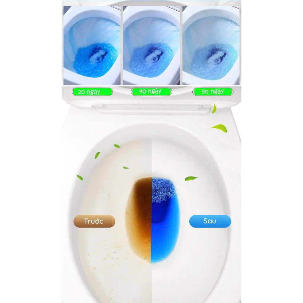 Hướng dẫn sử dụng : Trước khi thả vào bồn cầu mình bóc tem + bỏ giúp em cái nút nhựa trên đầu ra luôn ạ. Xả hết nước cũ trong bồn cầu và đặt hộp này vào ạ
