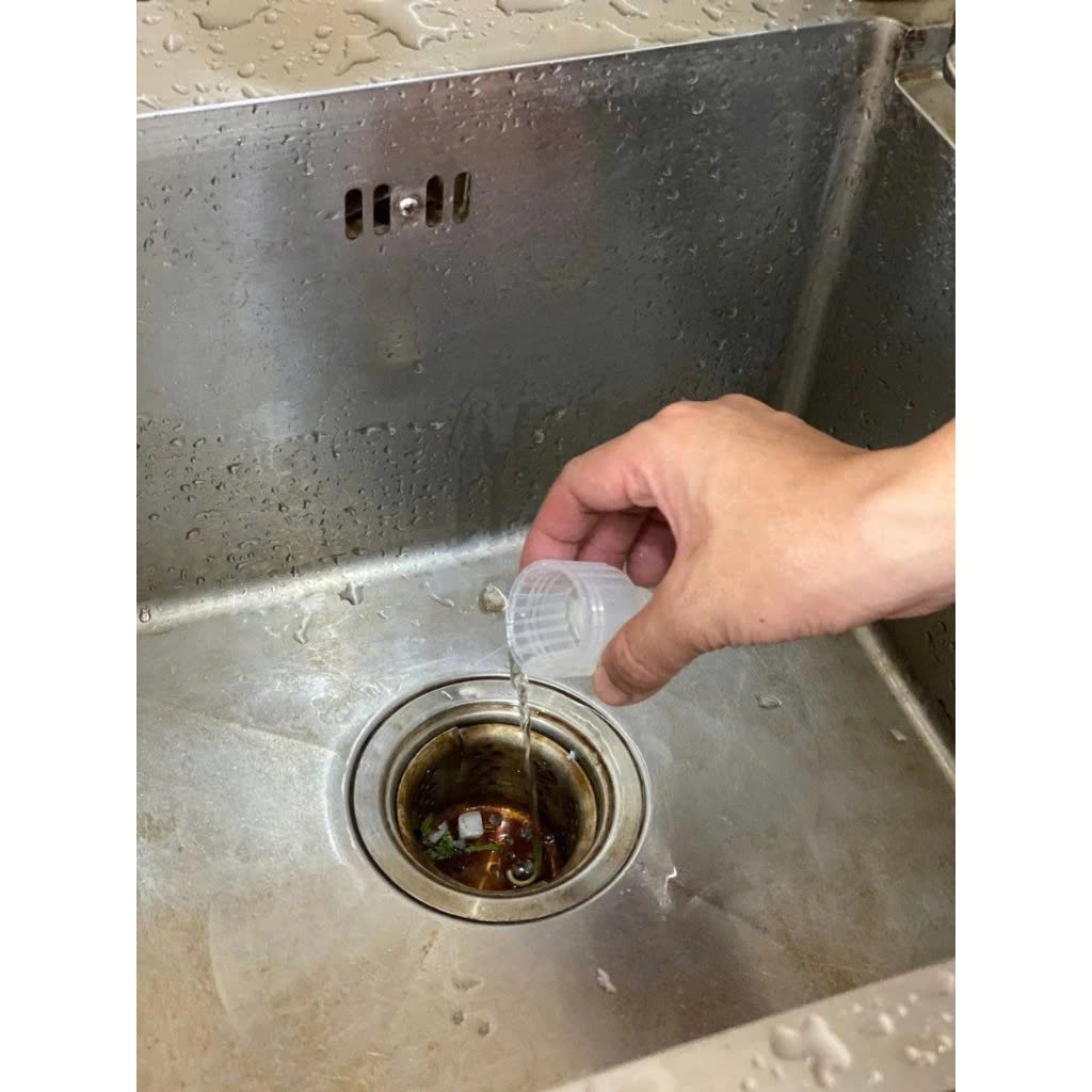 - Đổ trực tiếp chất lỏng từ chai vào miệng cống hoặc đường ống bồn rửa bát, bồn tắm, lavabo,… -> Khử mùi: 1 vạch -> Khử chất nhờn: 2-3 vạch -> Thông tắc: 4-5 vạch