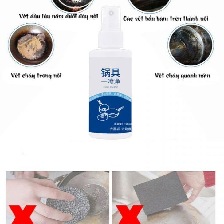 Chai xịt loại bỏ rỉ sét nồi chảo 100ml sẽ quét sạch vết ố vàng lâu ngày ở bếp ga, bếp điện, bếp từ, máy hút mùi…Làm sạch đồ gốm sứ, lavabo và các thiết bị vệ sinh…Đánh bay cặn bẩn trên vách kính,nhà tắm…Là trợ thủ đắc lực khi bạn muốn làm mới sàn, tường gạch men và toàn bộ căn nhà thân yêu…Dung tích: 100MLThành phần: Hoạt chất, Tinh dầu,Hỗn hợp kiềm. v.v...Công dụng:Loại bỏ vết bẩn dễ dàngTiết kiệm thời gianThân thiện với môi trườngKhông gây hại cho dụng cụTẩy Mạnh Mẽ: Làm sạch hoàn toàn vết dầu mỡ bám lâu ngày trên lò vi sóng, tủ nướng, vết nướng – cháy cặn ở xoong nồi, vết cacbon hoá trên bàn ủi. Tiết Kiệm Chi Phí: công dụng cực mạnh giúp tiết kiệm tối đa lượng dung dịch cần sử dụng. Tiện Dụng: thiết kế dạng chai xịtThân Thiện Với Môi Trường: Công nghệ hoá phẩm tân tiến thân thiện da tay người dùng.Đánh sạch bóng xoong nồi, chảo, cả những vết cháy khét.Cách sử dụng: Bước 1: Xịt đều lên bề mặt vết bẩn cần làm sạch.Bước 2: Quấn màng bọc thực phẩm để tránh bay hơiBước 3: Chờ từ 4 giờ đến 36 giờ hoặc để qua đêm.Bước 4: Rửa lại bằng nước nóng vào hôm sauKích thước chai xịt: 14x4cmTrọng lượng: 92g#chaixit #chaixitgiset #chao #dangxit #vesinhnoichao #vesinhbep #sachbong #100ml #tiendung #sachnhanhchong