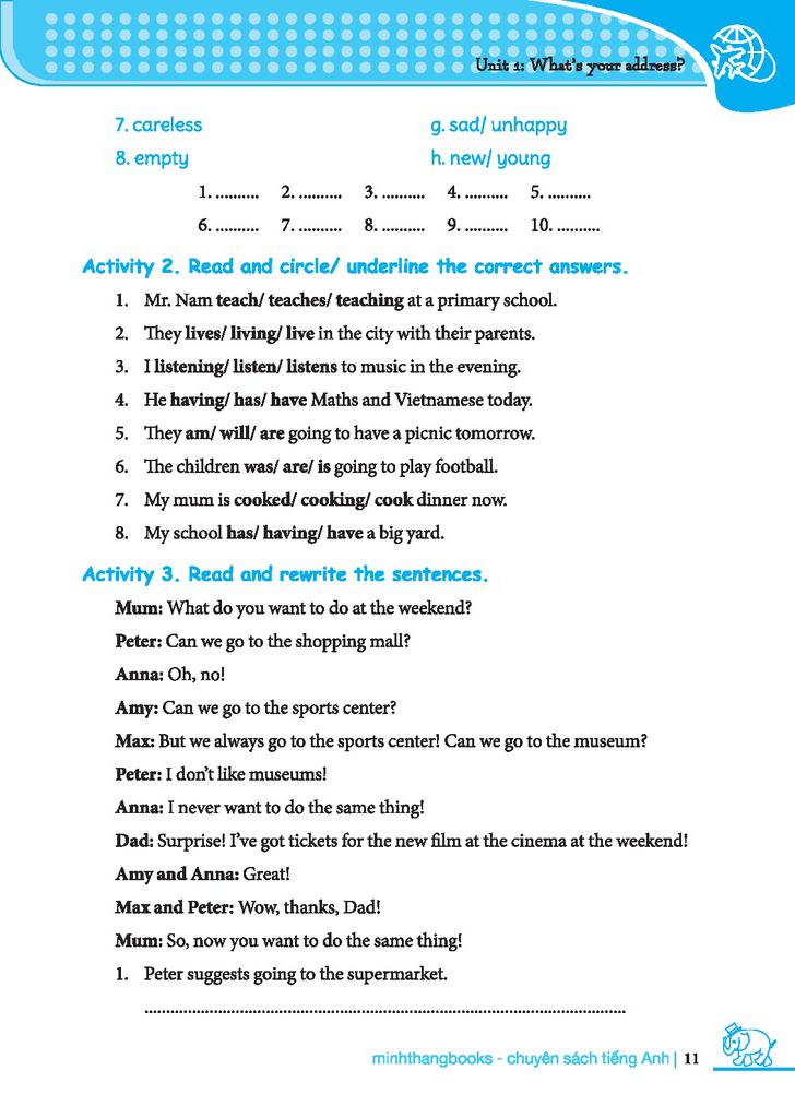 Cuốn sách biên soạn dựa trên sách giáo khoa thí điểm của Bộ Giáo Dục và Đào Tạo. Sách tập trung vào việc rèn luyện các kỹ năng cơ bản như : Nghe , nói , đọc , viết thông qua các bài tập và phát triển kỹ năng giao tiếp ; cách phát âm ; từ vựng phong phú ; đọc các đoạn hội thoại , đoạn văn ,… giúp các em vận dụng và tổng hợp kiến thức hiệu quả nhất .