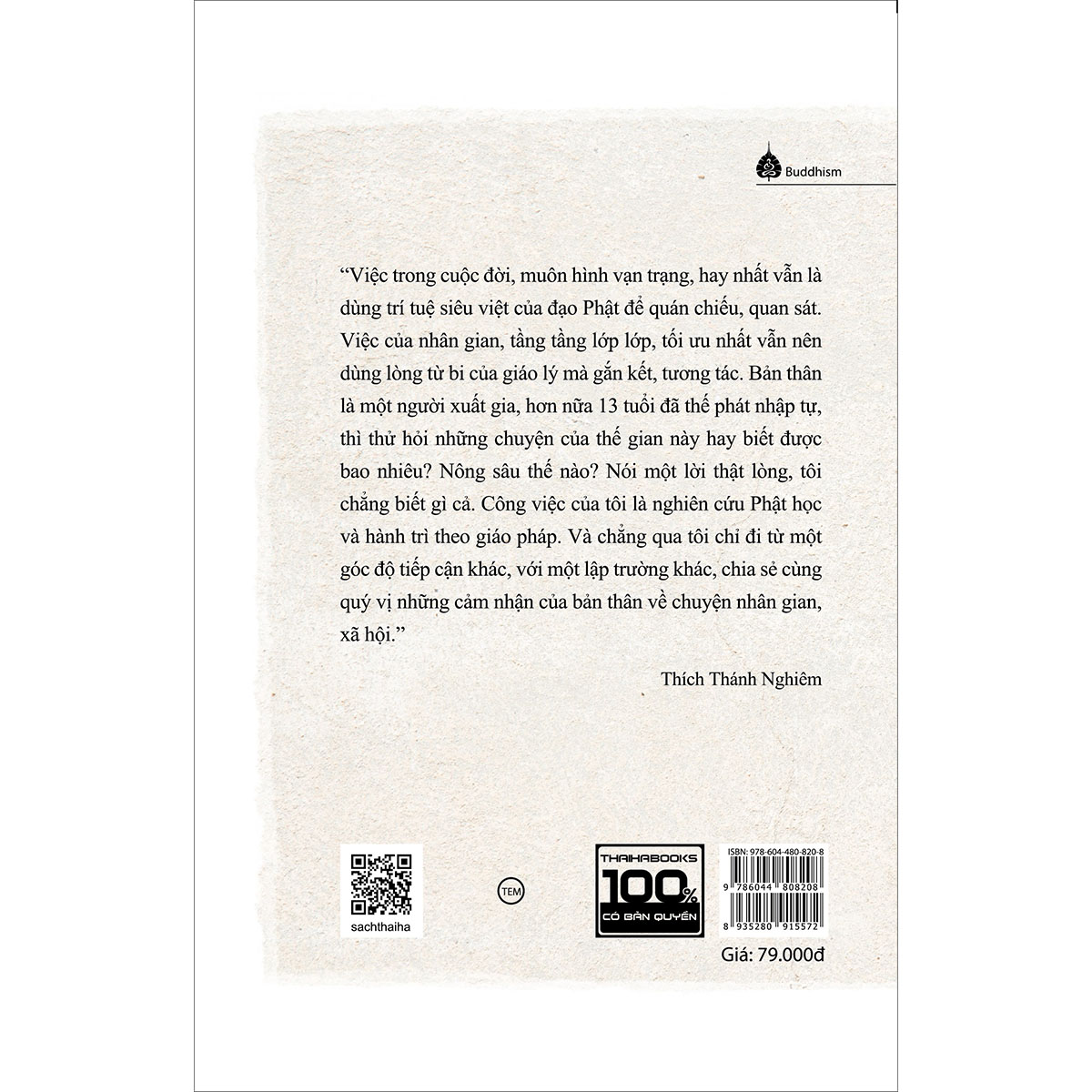 Phương Ngoại Khán Hồng Trần Hòa thượng Thích Thánh Nghiêm là đã tận dụng lợi thế của một khách phương ngoại, một người ngoài cõi, để từ nhãn quan đạo Phật, nhãn quan của