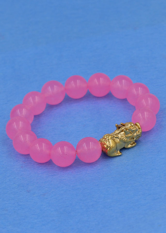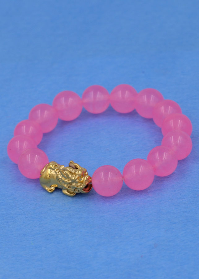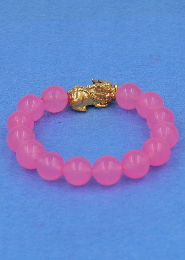 ✨Chuỗi đeo tay thạch anh hồng phấn 12 ly - cẩn Tỳ Hưu inox vàng VTAHPTHV12 - hợp mệnh Hỏa, mệnh Thổ