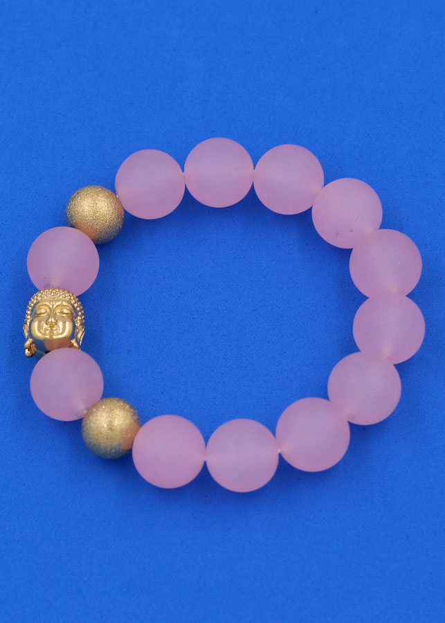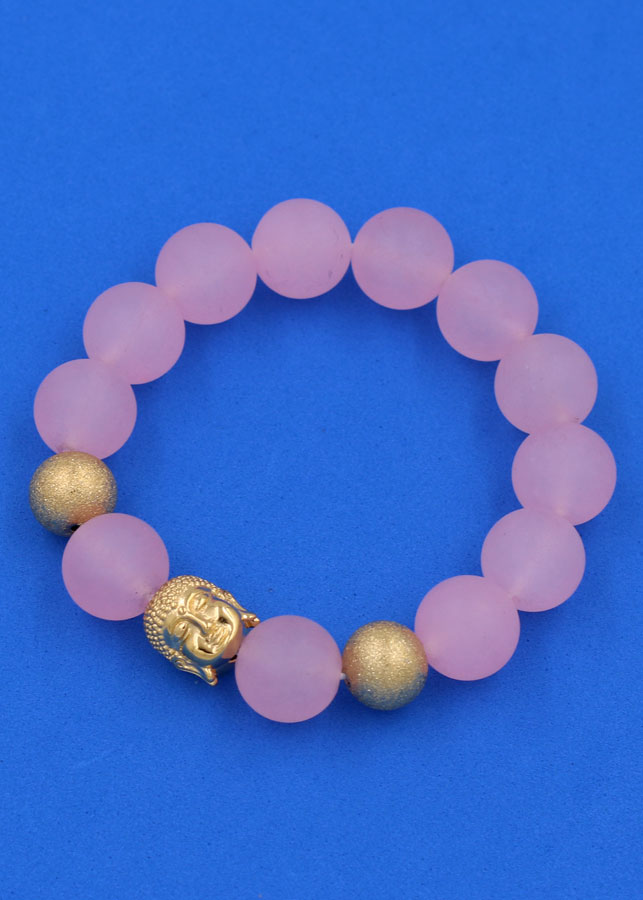✨Chuỗi đeo tay Thạch Anh Hồng Phấn Mờ 14 ly - Vòng tay Phật A Di Đà inox vàng VTAHPMNLVHB14 - hợp mệnh Hỏa, mệnh Thổ - Vòng đeo tay size lớn