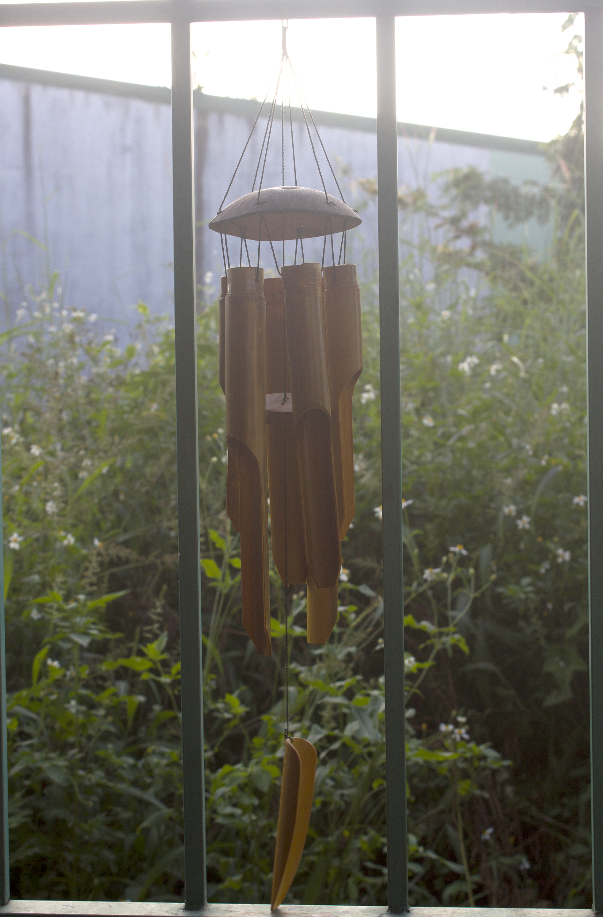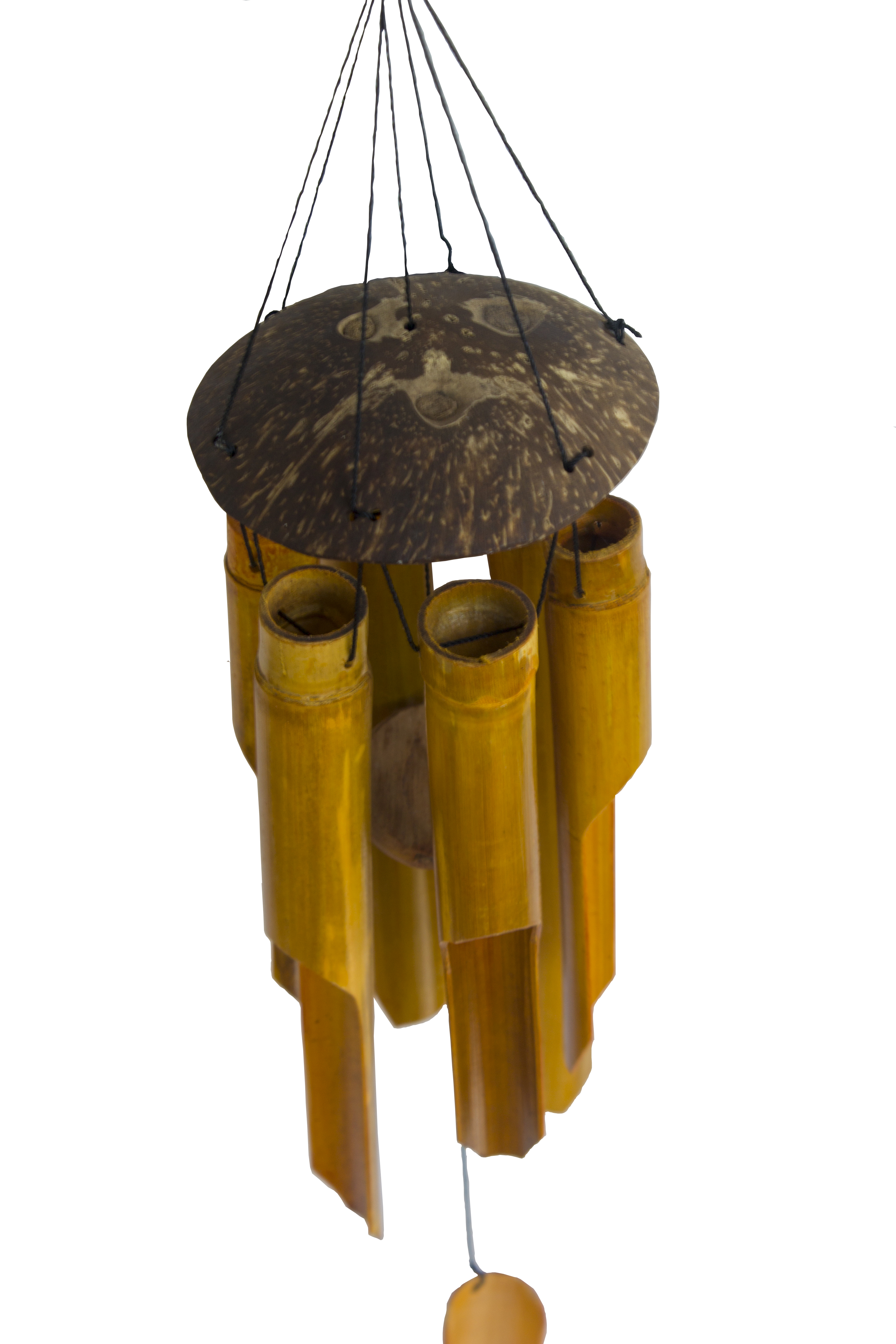 Một bộ chuông gió gồm 5 - 6 ống tre, chóp bằng gáo dừa.