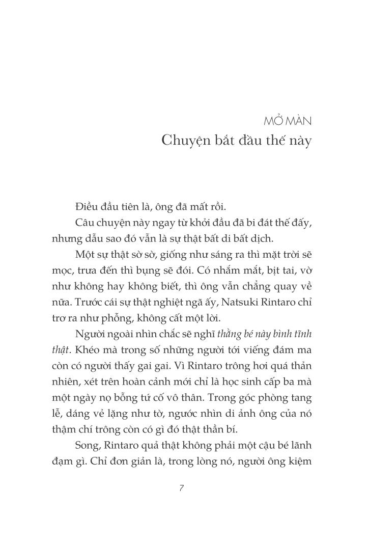 Bỗng đâu một ngày, một con mèo mướp thân thế kỳ bí thạo tiếng người chình ình xuất hiện ở tiệm sách cũ Natsuki và bảo với Natsuki Rintaro như vậy. Lòng đầy nghi hoặc song sẵn tình yêu vô bờ với sách, Rintaro gật đồng đồng ý như một lẽ cố nhiên. Và thế là, những cuộc phiêu lưu vào thế giới sách bắt đầu.