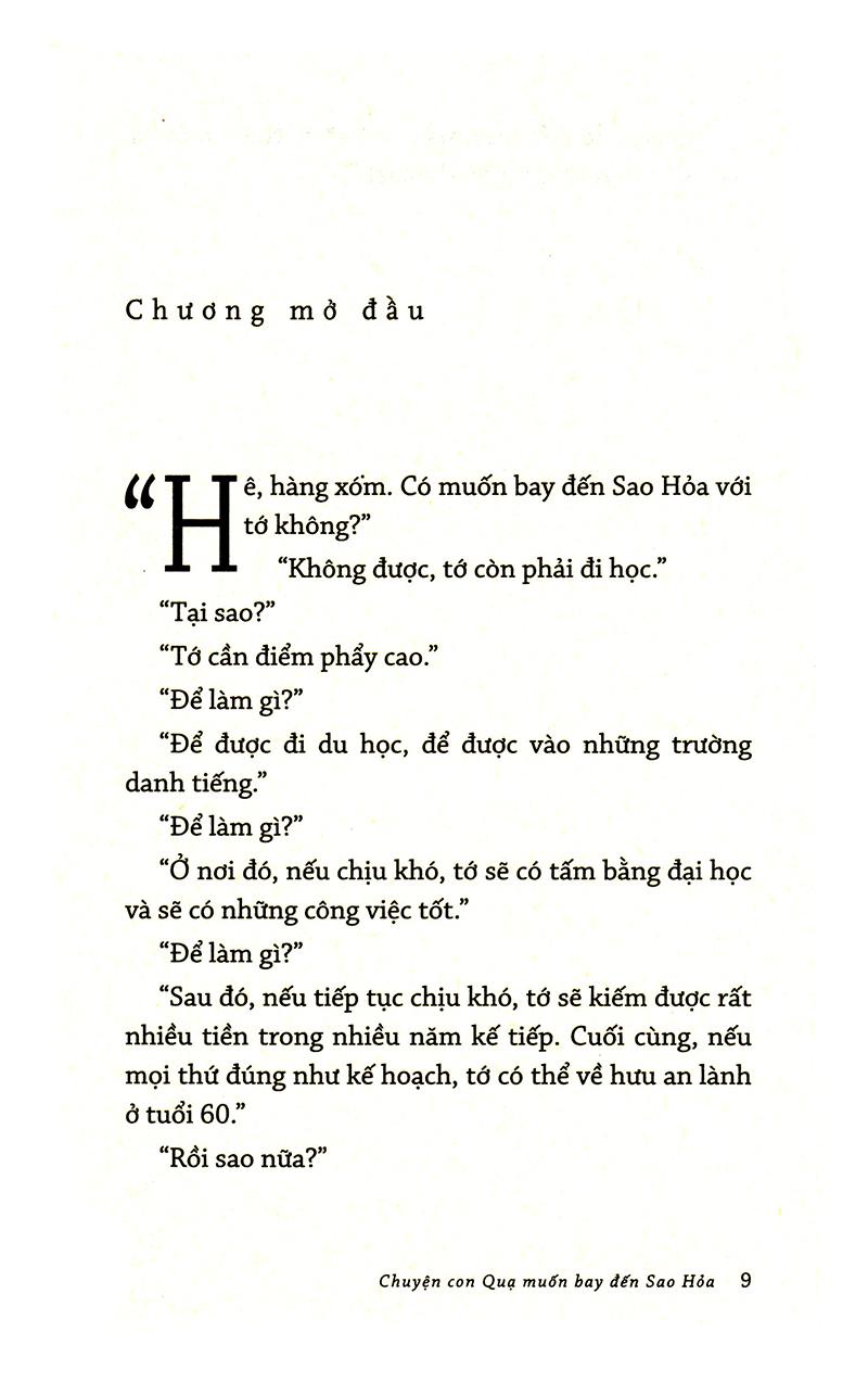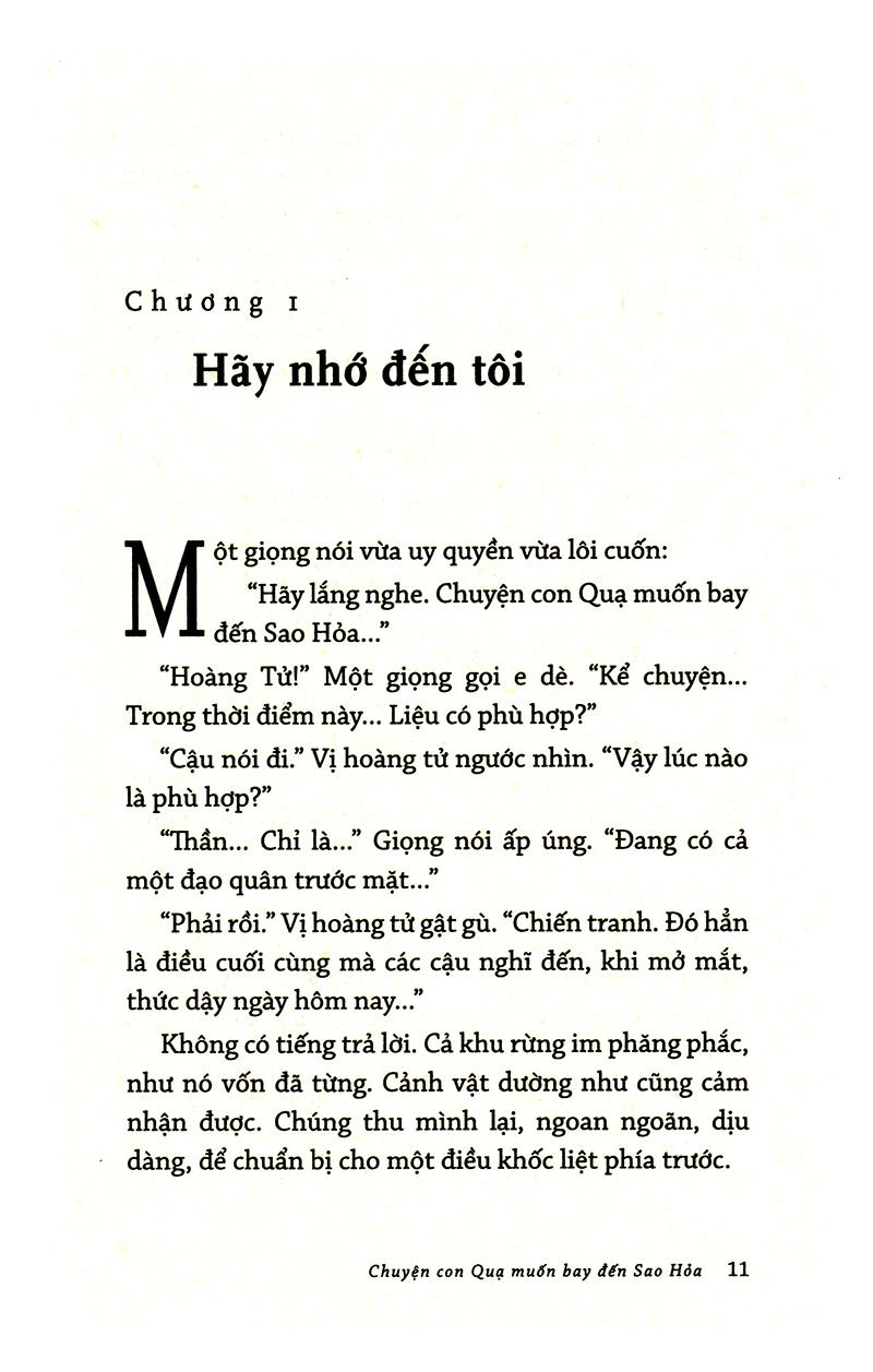 Trong tập đầu tiên - Chuyện Con Quạ Muốn Bay Đến Sao Hỏa - sách tập trung hướng dẫn bạn đọc cách sử dụng ngôn ngữ nói để trình bày với người khác điều mình kỳ vọng và muốn làm, muốn nhận được sự chấp nhận, sự chú ý và ủng hộ. Đây là một kỹ năng cần thiết cho bạn trẻ trong mọi tình huống của cuộc sống.